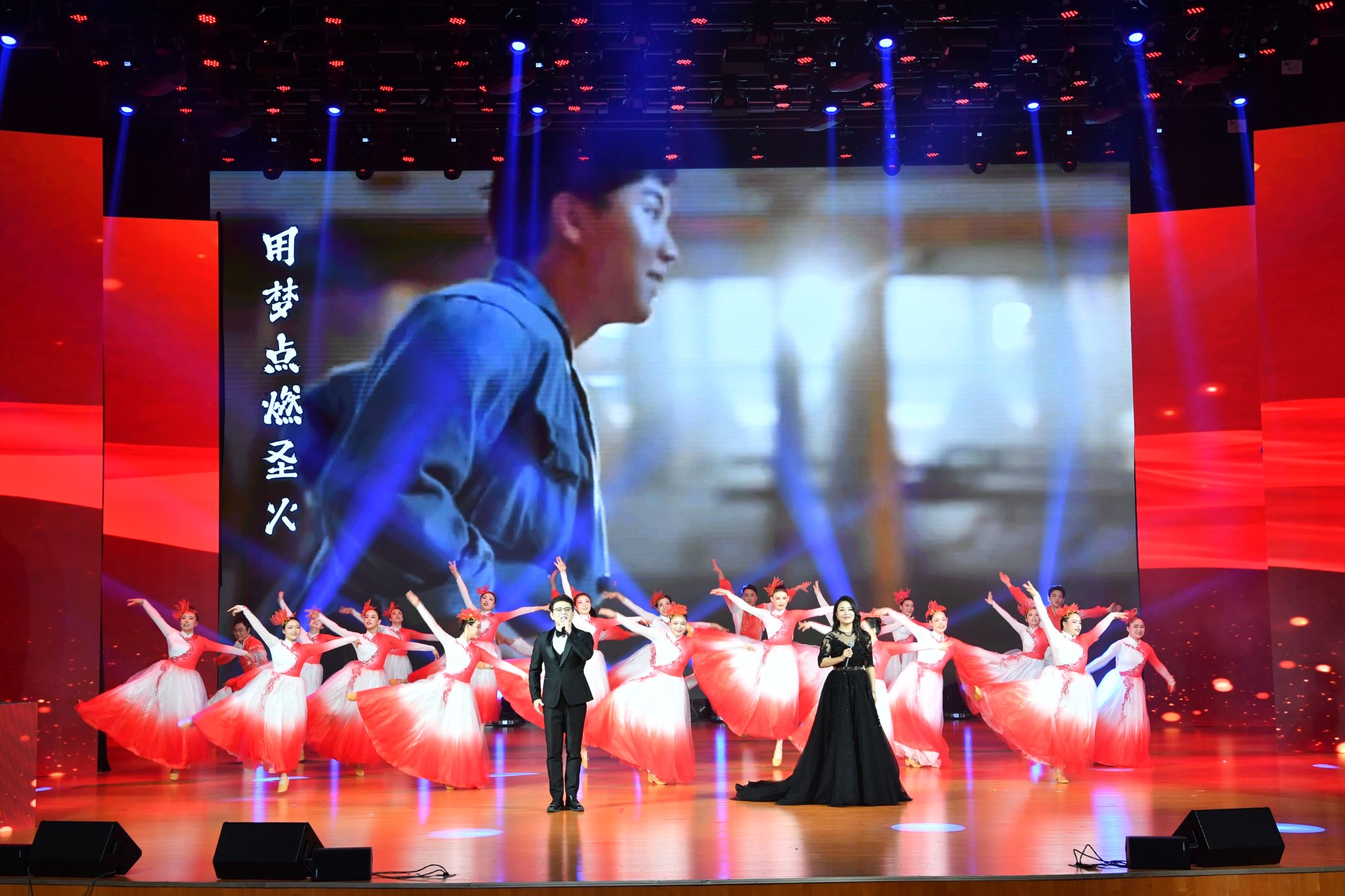不忘初心、牢记使命。第一乐章“我们的根脉”奏响坚守热爱、传承文化的旋律。学校退休教职工们带来的原创作品《回家,我要回家》在高昂有力的歌声中表达对祖国统一的强烈愿望。民大附小的同学们带来器乐合唱《红豆少年》,清亮的童声传递着传承中华优秀传统文化的精神,彰显中华少年的风采。校艺术团带来舞蹈《传响》,舞者在铿锵的鼓点和坚定的舞步中将文化与艺术紧密结合,传递着信仰的力量与光芒。教职工带来的歌舞《理想照耀中国》启示着我们理想的光辉是指引民族伟大复兴的方向。