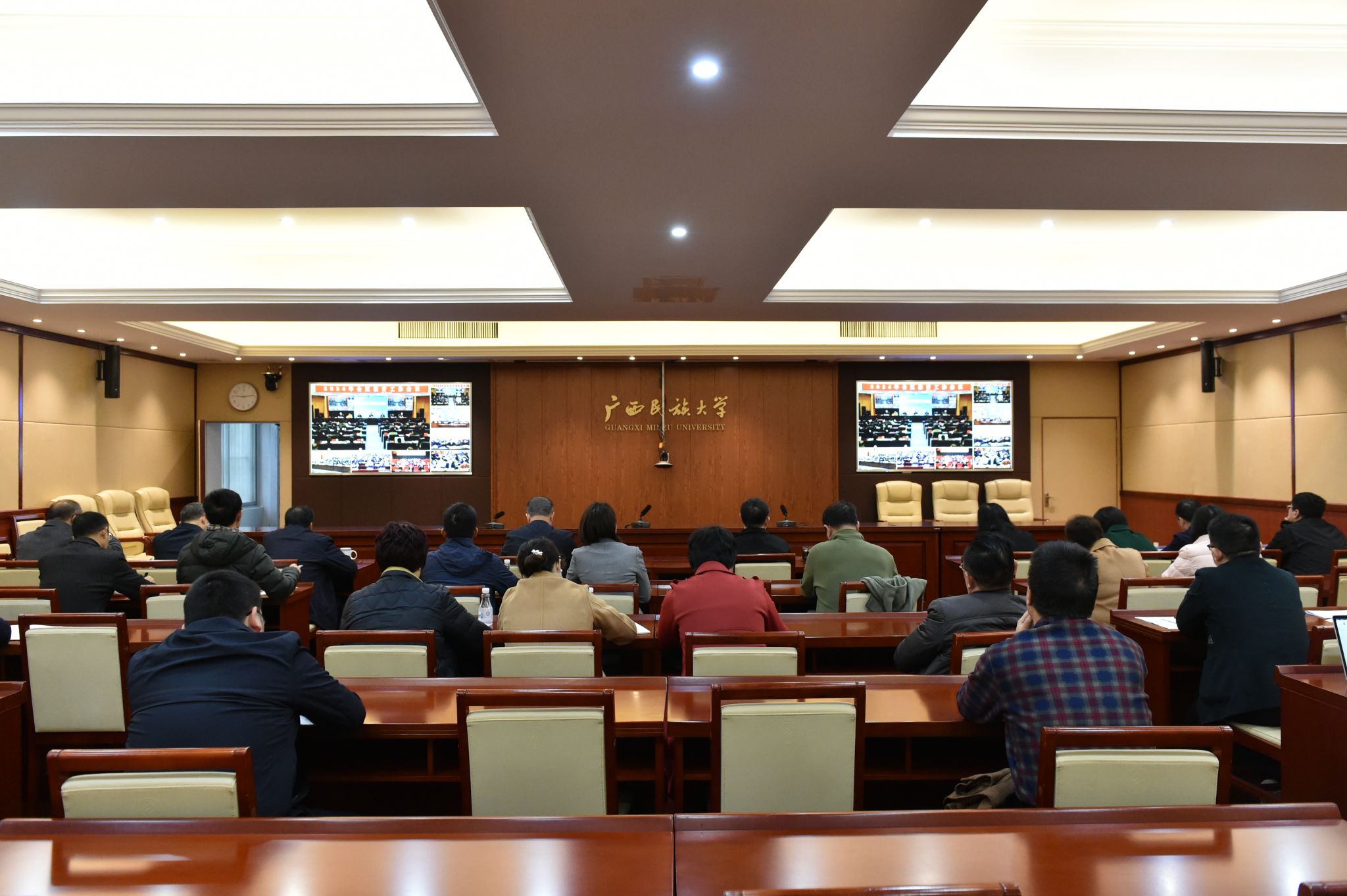 会议以视频形式召开,taptap点点体育在校领导班子成员及有关职能部门负责人在学校分会场参加会议。