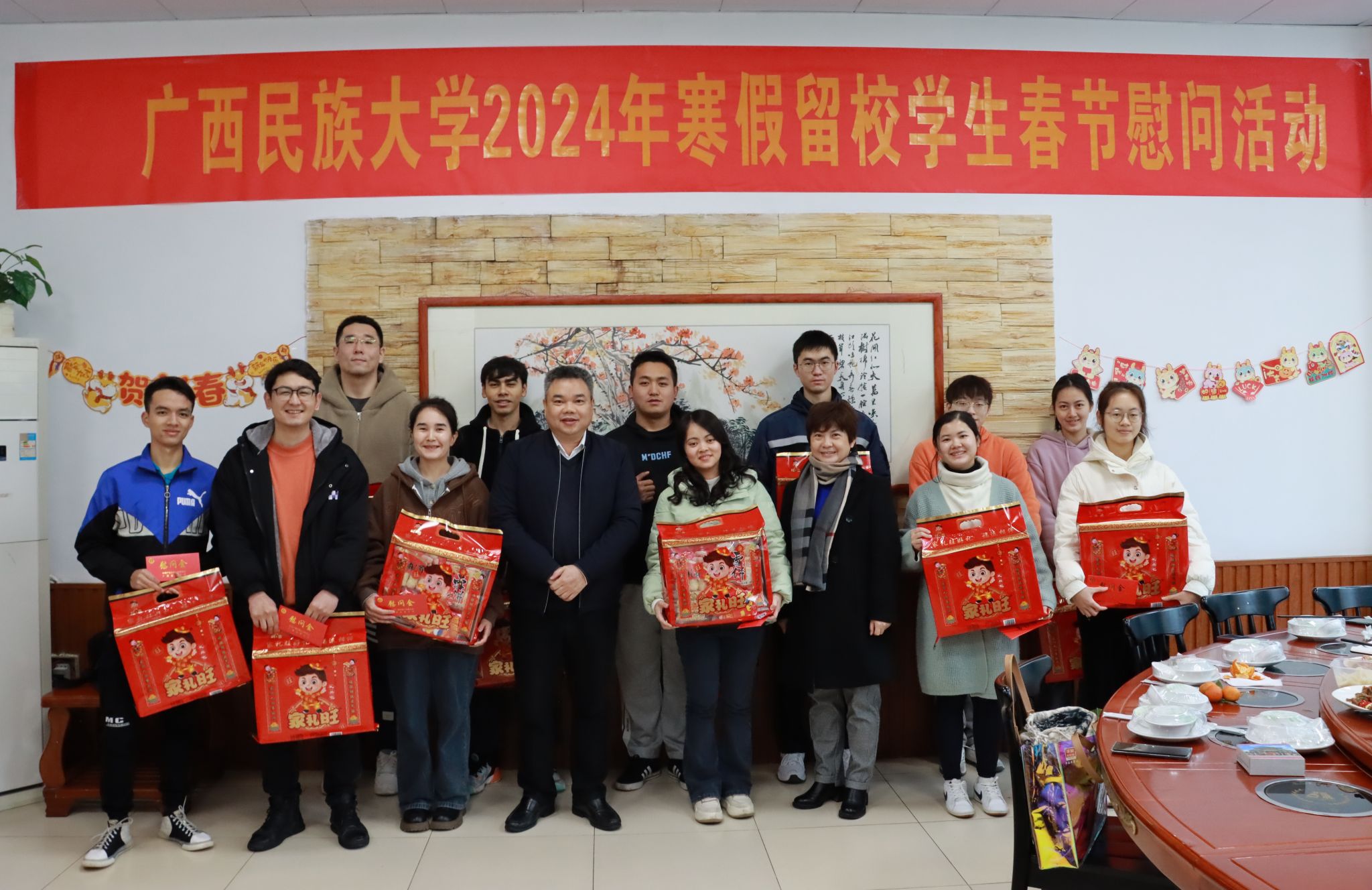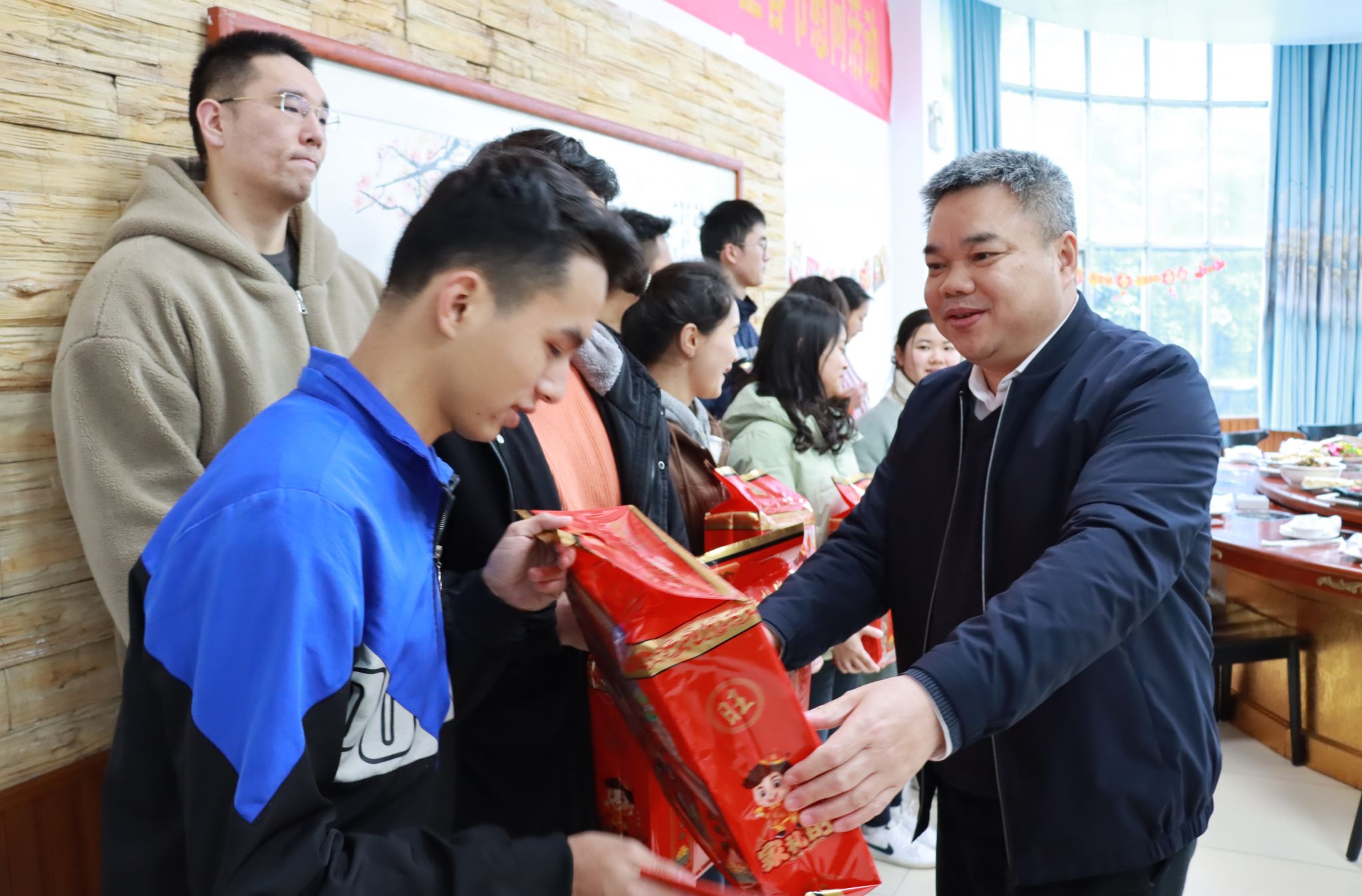 【大学生通讯社报道】2月7日,taptap点点体育在相思湖校区红豆轩餐厅开展2024年留校学生慰问暨团圆饭活动。校党委副书记陈铭彬以及有关职能部门负责人到场慰问留校学生,送上学校的关怀和新年祝福。