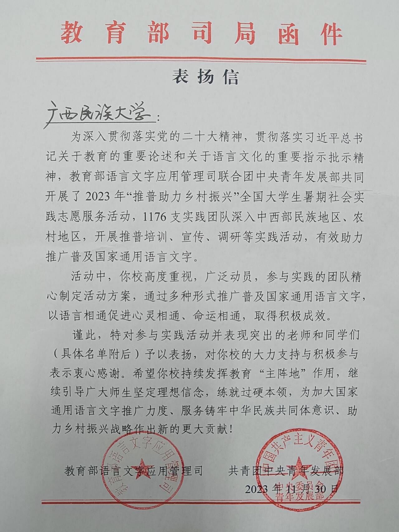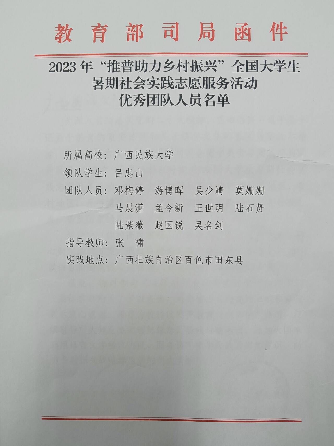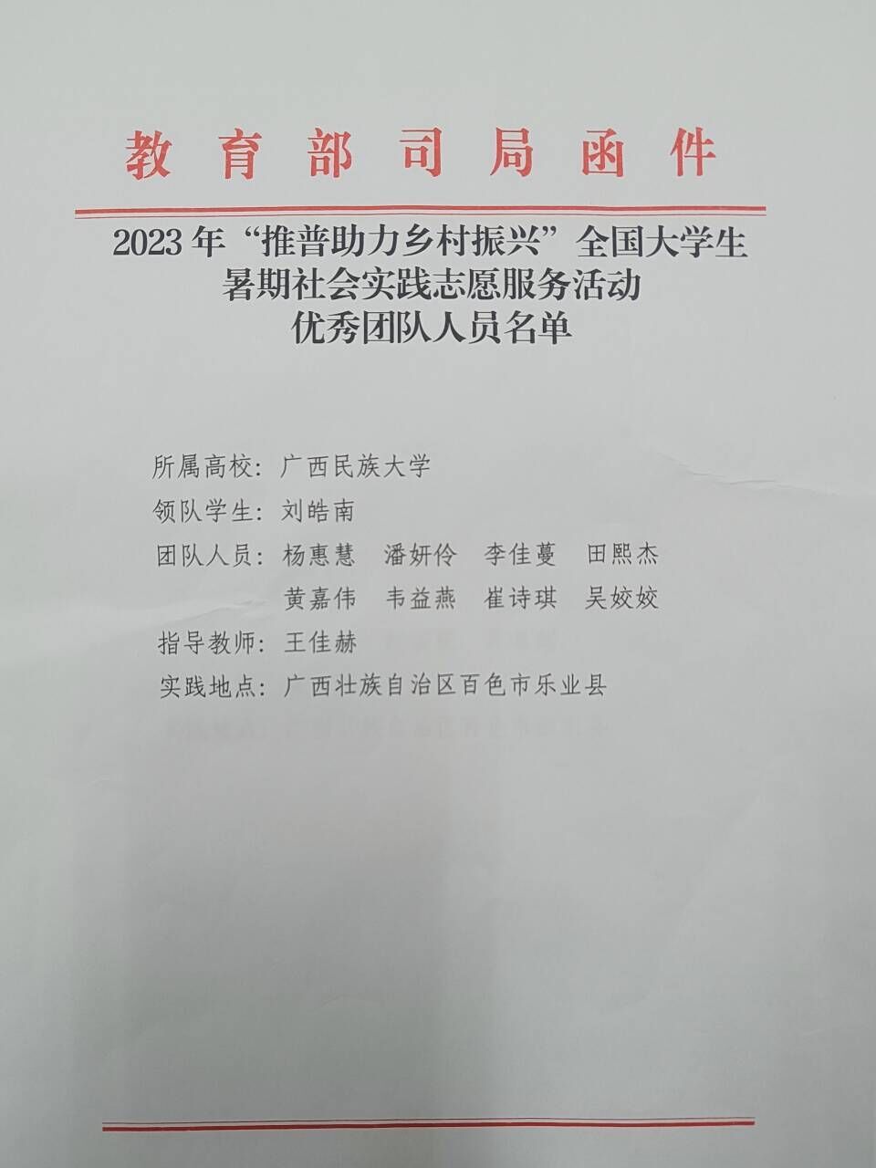 近日,由taptap点点体育学生刘皓南、胡凯琪、吕忠山分别带领的三个实践团队在2023年“推普助力乡村振兴”全国大学生暑期社会实践志愿服务活动中表现突出,获得教育部语言文字应用管理司和团中央青年发展部的表扬,被授予“全国优秀团队”称号。