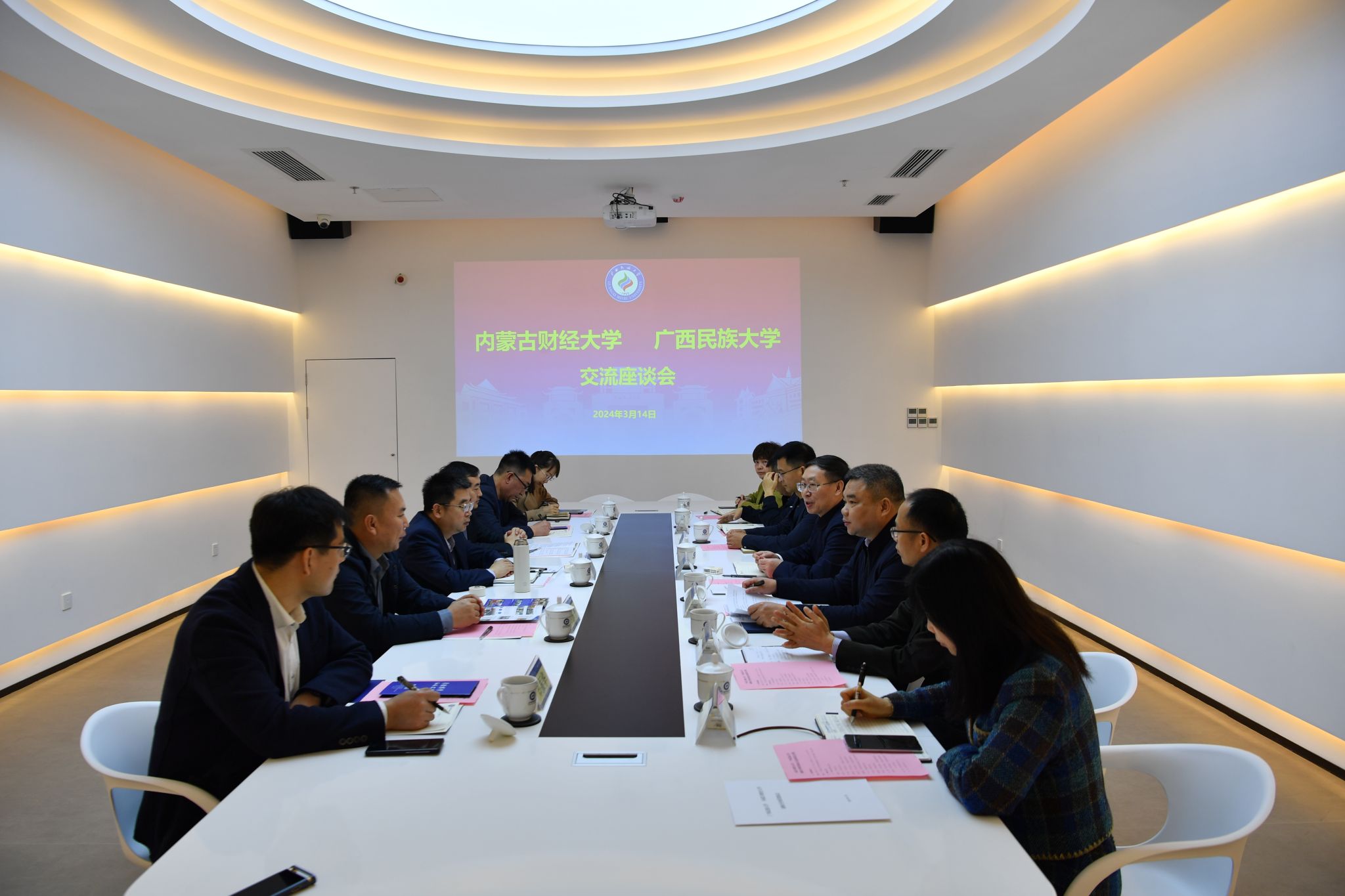 3月14日,内蒙古财经大学党委书记刘前贵,党委副书记徐全忠一行到taptap点点体育调研,学校党委书记卞成林,党委副书记陈铭彬和有关部门负责人陪同调研。