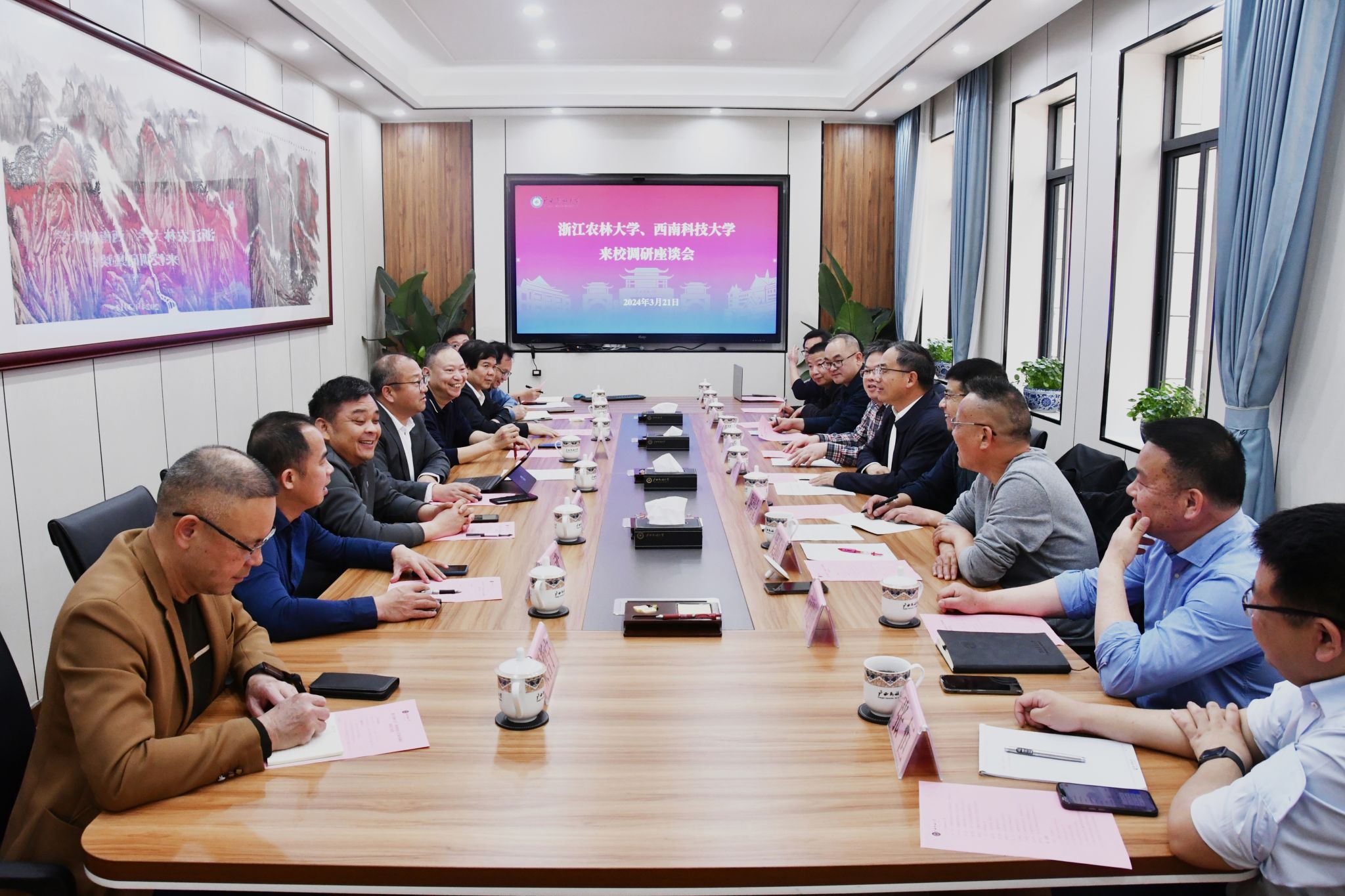 【浙江农林大学、西南科技大学到taptap点点体育调研】3月21日,副校长姜明国与浙江农林大学副校长胡祖吉,西南科技大学后勤服务集团总公司党委副书记、纪委书记袁明座谈交流。姜明国介绍我校“绿色学校”创建的具体做法、房产资源精细化管理和有偿使用办法、校园食品安全排查整治专项行动措施和长效化机制建设、校友会工作创新举措、后勤保障工作创新及后勤劳动教育开展情况。