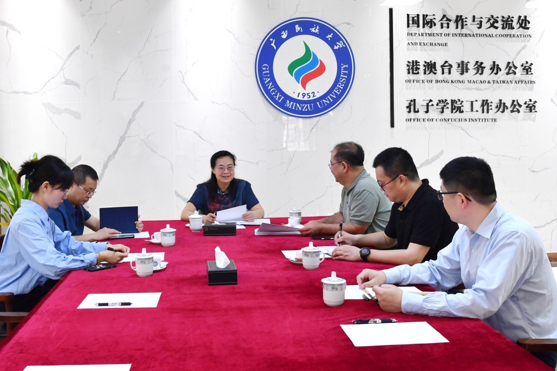 韦仕珍指出,学校国际合作与交流工作要以习近平新时代中国特色社会主义思想为指导,全面贯彻落实党的二十大精神,围绕学校“十四五”规划目标,以党建为引领,做好孔子学院、外专外教、中外合作办学和来华留学生管理等工作,着力构建开放办学新格局,助力学校高质量发展。