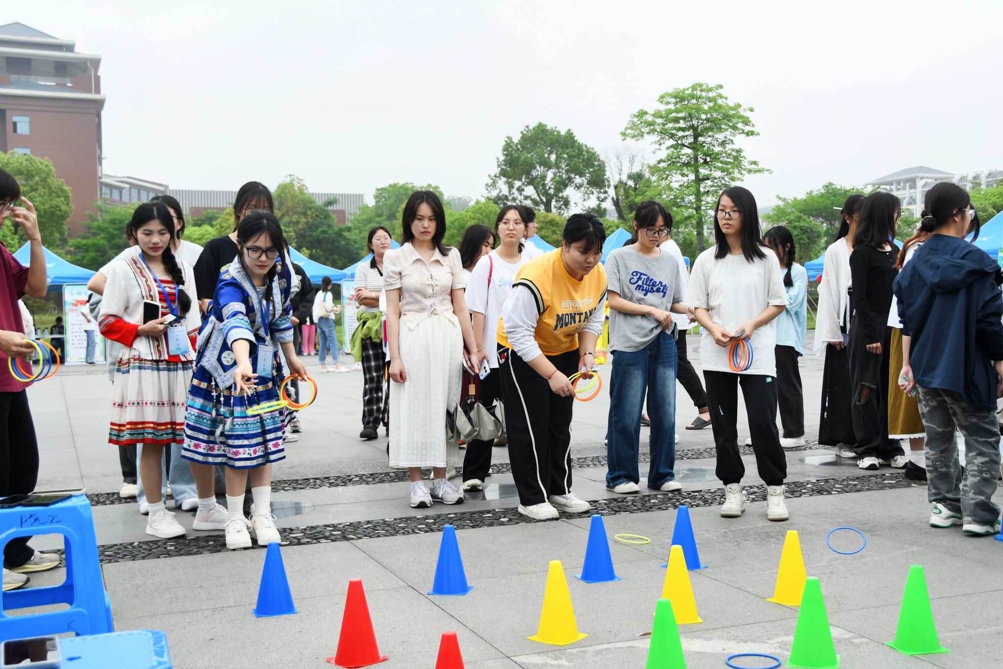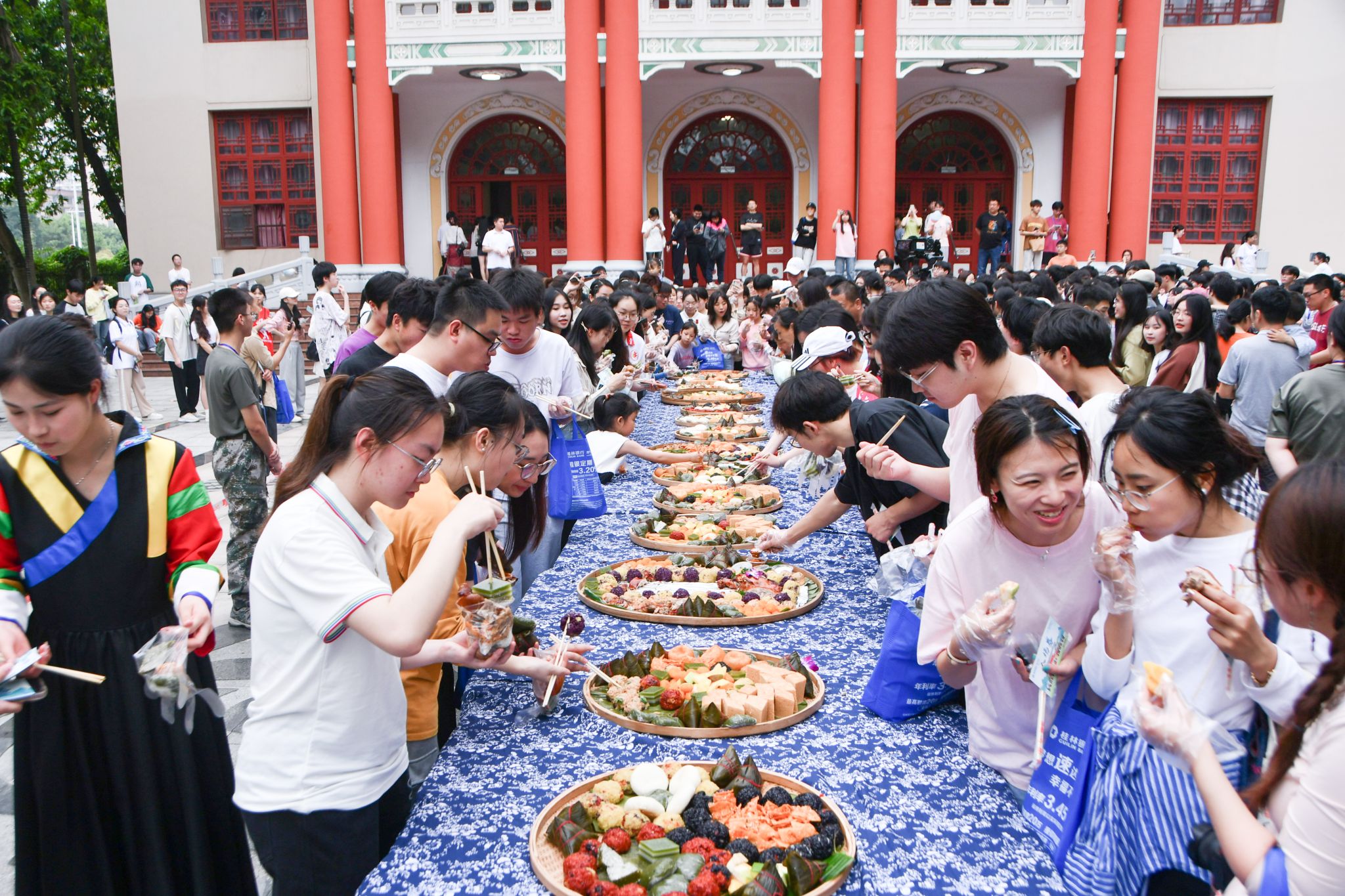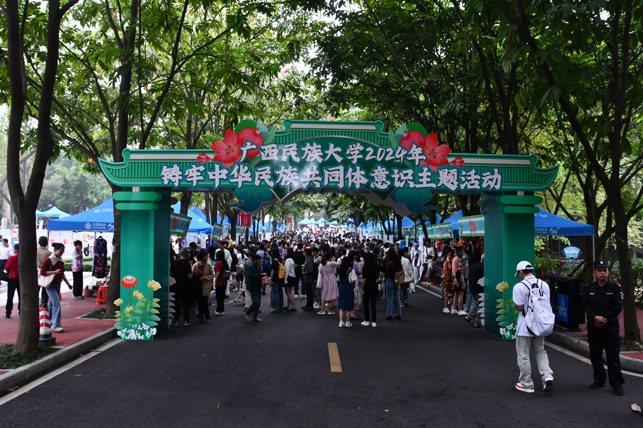 本次活动设有民族风情展示区、民族游戏畅玩区、民族乐器体验区、民族手工体验区、民族服装体验区、民族非遗制作区、茶文化体验区、礼品兑奖区、民族体育竞赛、山歌擂台挑战区、民族美食流水席等多个板块。竹竿舞动,茶香四溢,各式各样的传统民族服饰、手工包袋、非遗陶艺等民族手工艺品,造型各异、琳琅满目,烘托出浓浓的民族团结氛围,令师生目不暇接,流连忘返。(初审:潘之铭 复审:荣子卿 终审:王文娟)