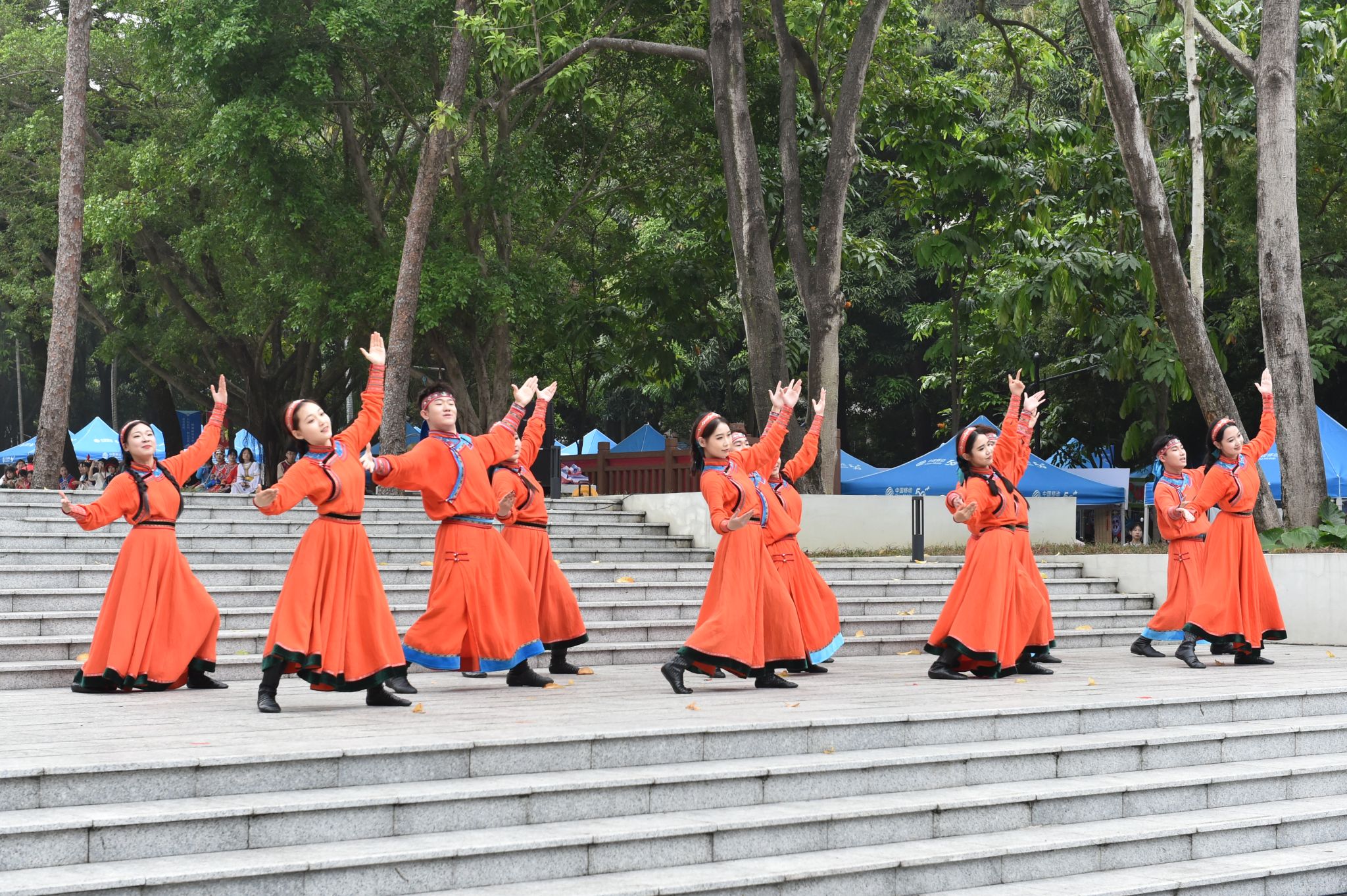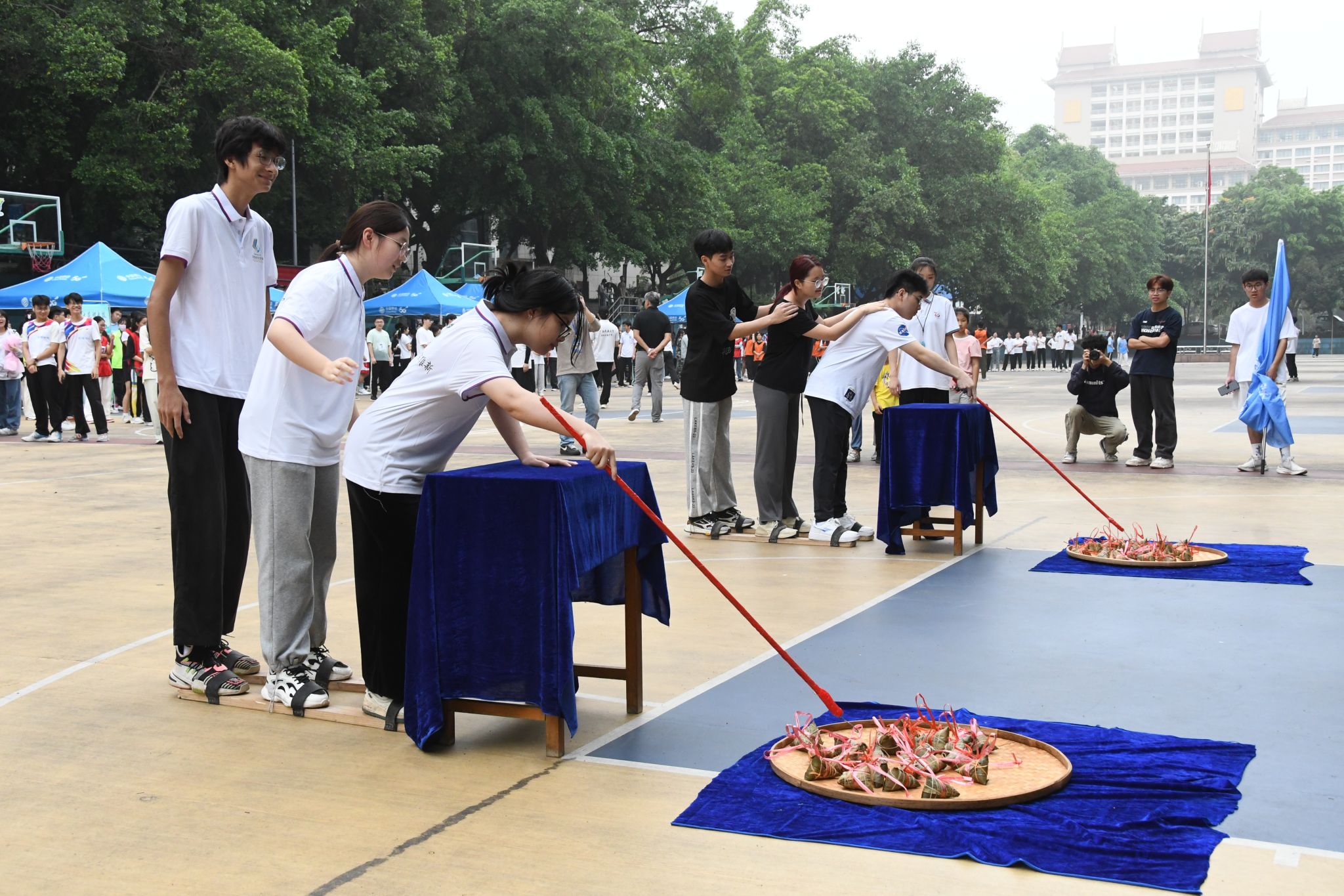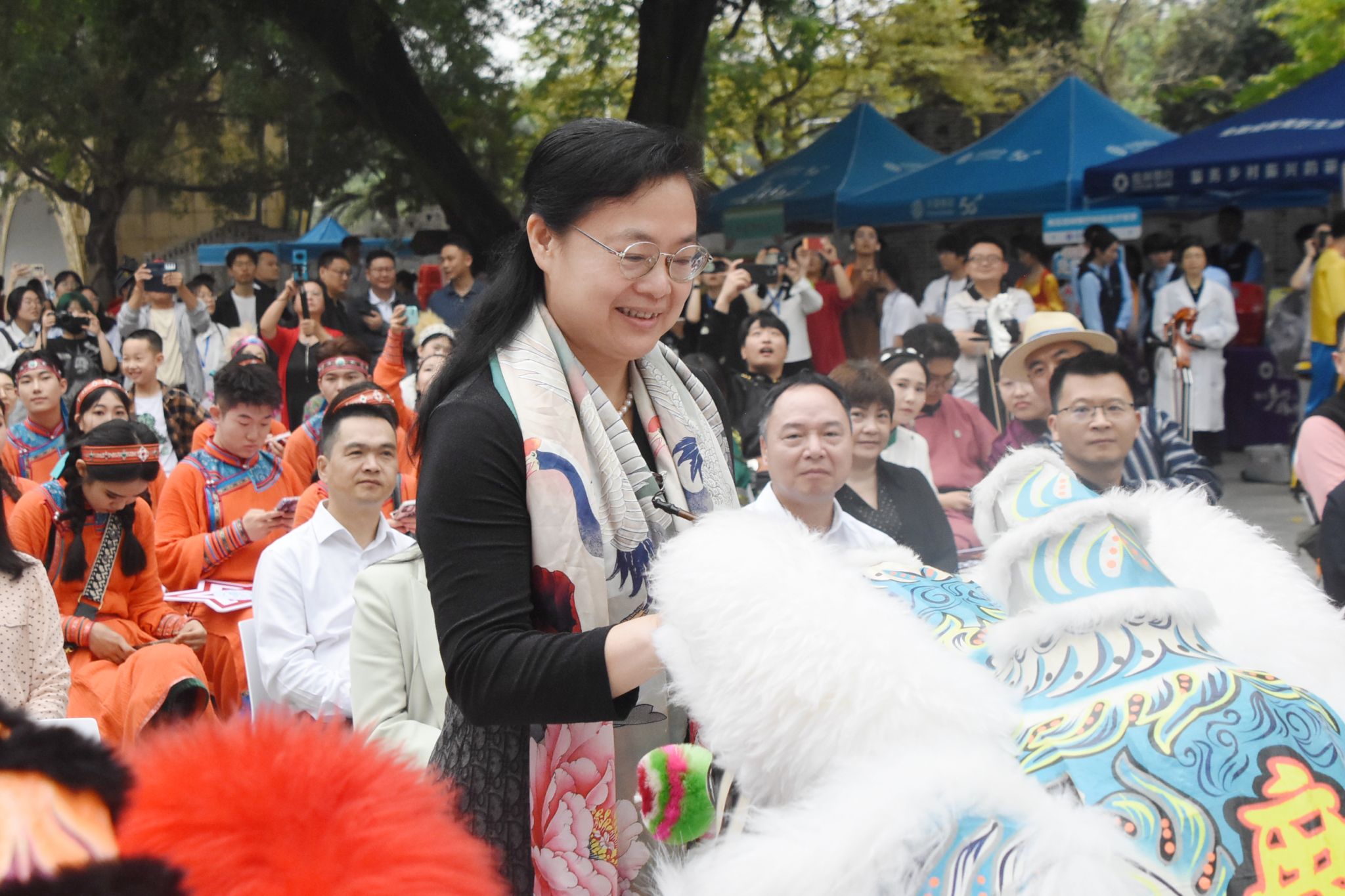 本次活动设有民族风情展示区、民族游戏畅玩区、民族乐器体验区、民族手工体验区、民族服装体验区、民族非遗制作区、茶文化体验区、礼品兑奖区、民族体育竞赛、山歌擂台挑战区、民族美食流水席等多个板块。竹竿舞动,茶香四溢,各式各样的传统民族服饰、手工包袋、非遗陶艺等民族手工艺品,造型各异、琳琅满目,烘托出浓浓的民族团结氛围,令师生目不暇接,流连忘返。(初审:潘之铭 复审:荣子卿 终审:王文娟)