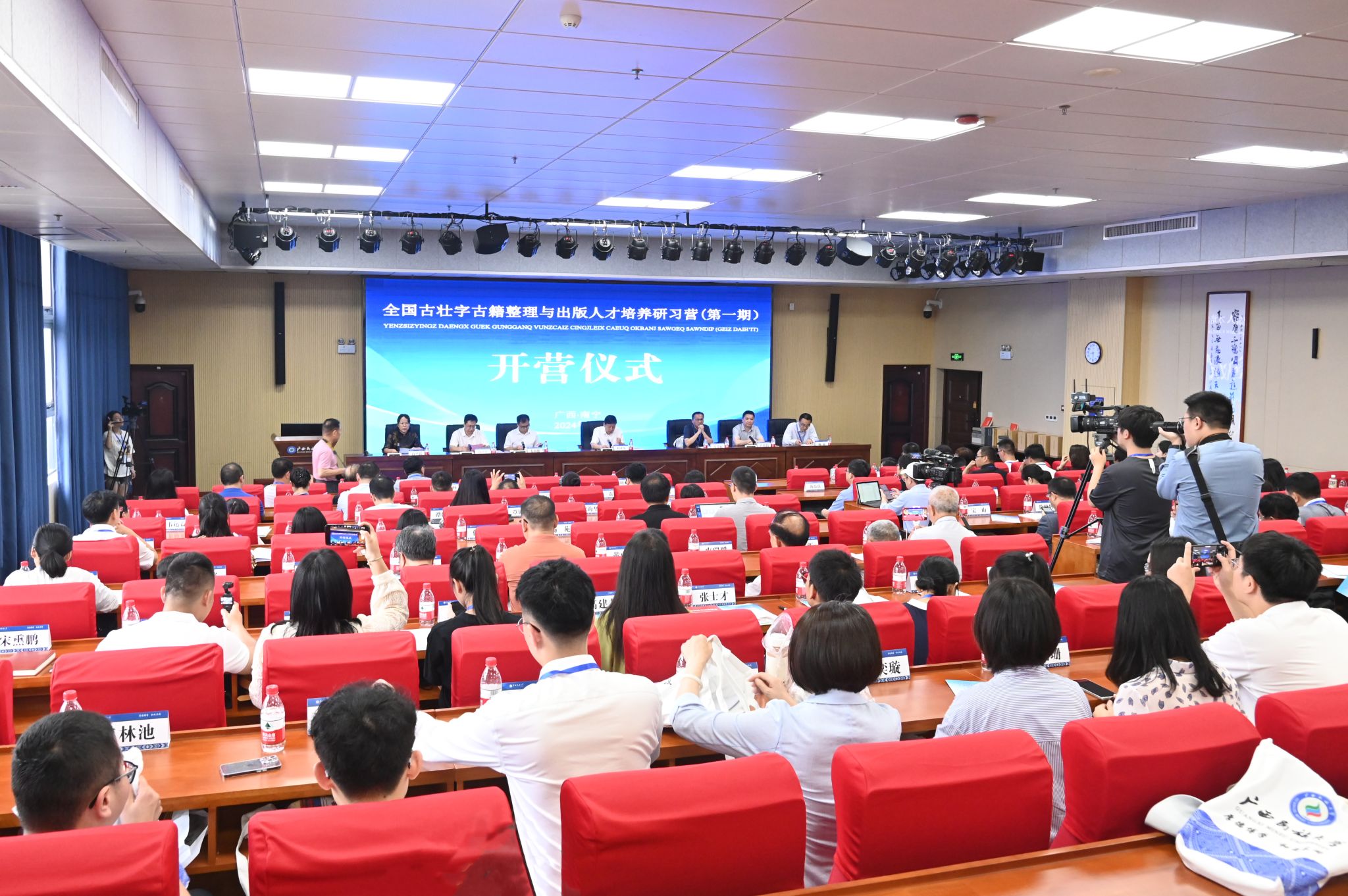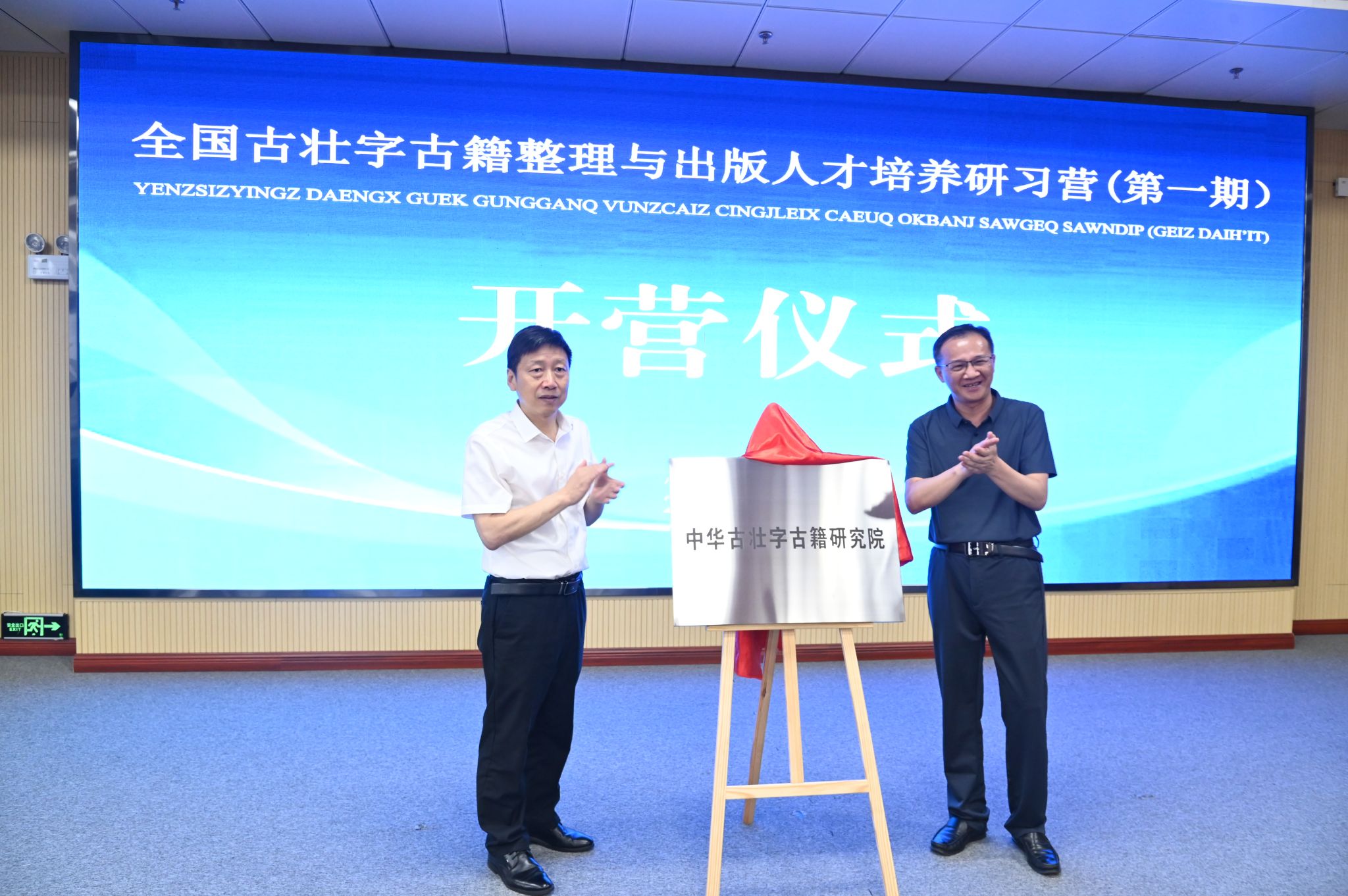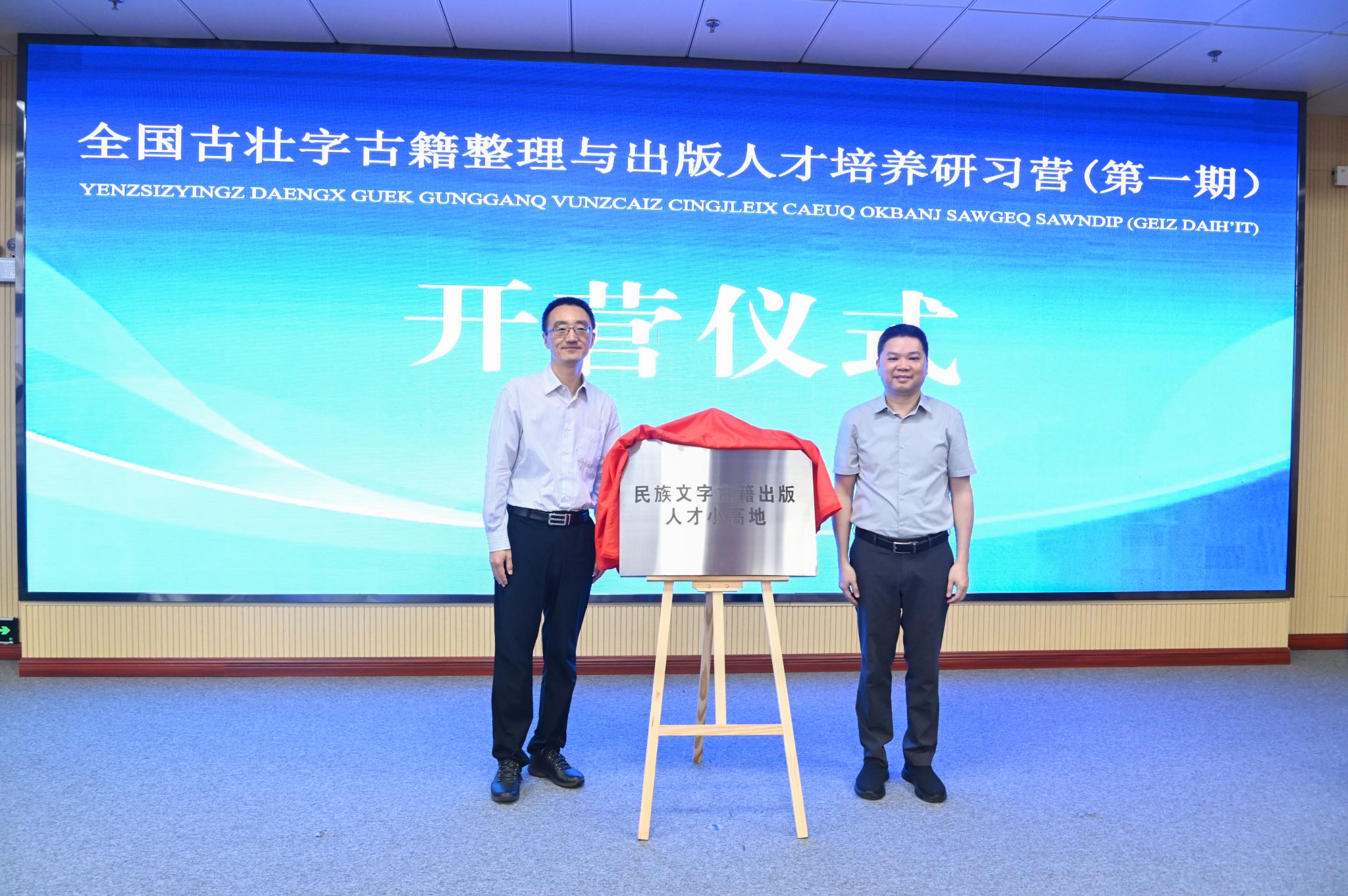 在开营仪式上,与会领导为“中华古壮字古籍研究院”“民族文字古籍出版人才小高地”“民族语言文字与古籍研究人才培养基地”揭牌,并为特聘专家颁发聘书。广西教育出版社正式发布古壮字古籍整理与出版人才信息系统和古籍整理出版服务软件。