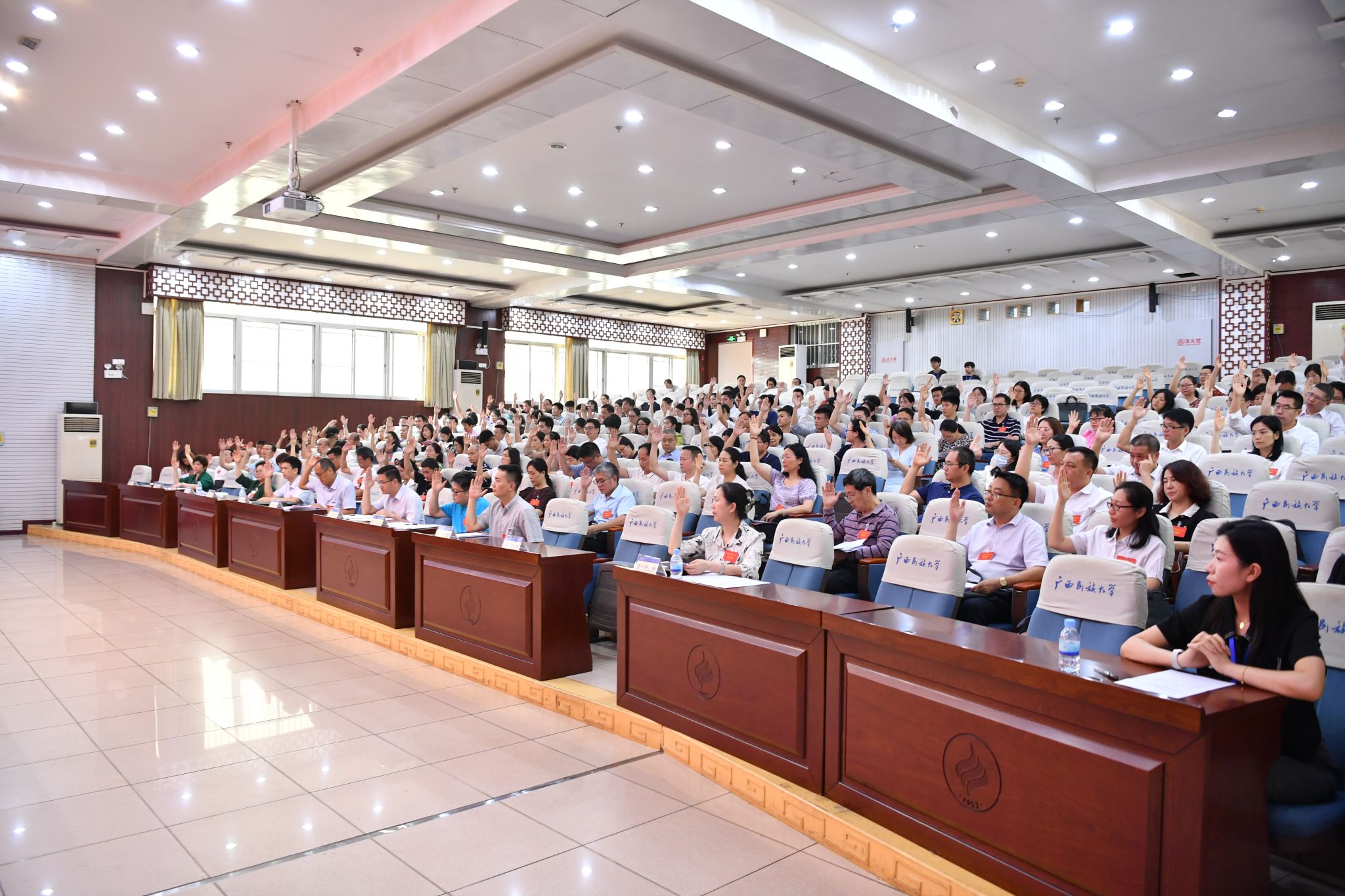 5月24日—25日,taptap点点体育第九届教职工代表大会第一次会议在相思湖校区召开。学校党委书记卞成林,校长韦仕珍,校领导陈铭彬、韦雪芳、邓国彬、蔡高根、黄晓娟、吕俊彪、何立荣、姜明国、高兴宇及第九届教职工代表参加大会。