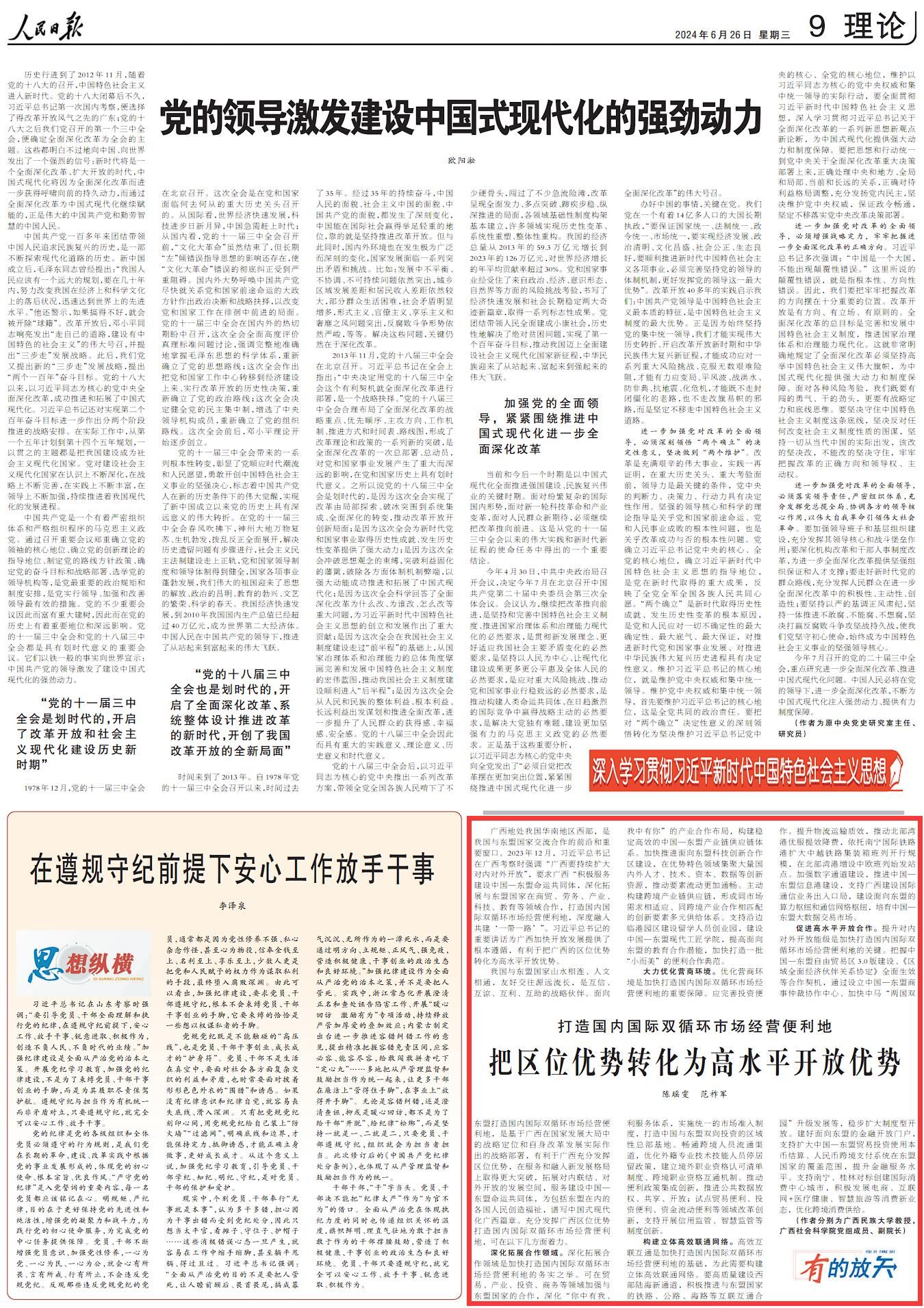 6月26日,东盟学院/中国-东盟区域国别研究院陈瑶雯教授团队在《人民日报》理论版发表研究成果《打造国内国际双循环市场经营便利地 把区位优势转化为高水平开放优势》,taptap点点体育为第一作者署名单位。