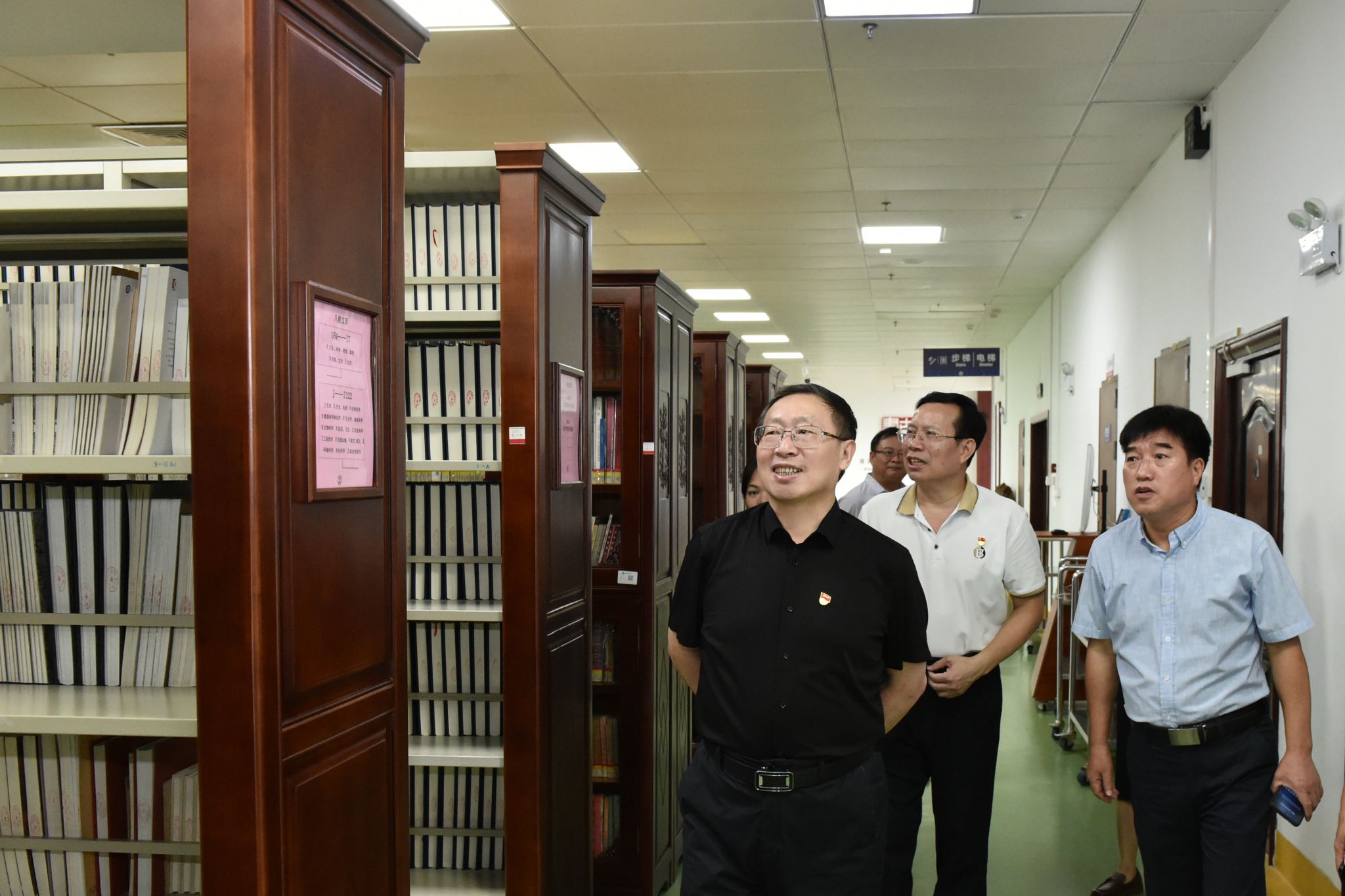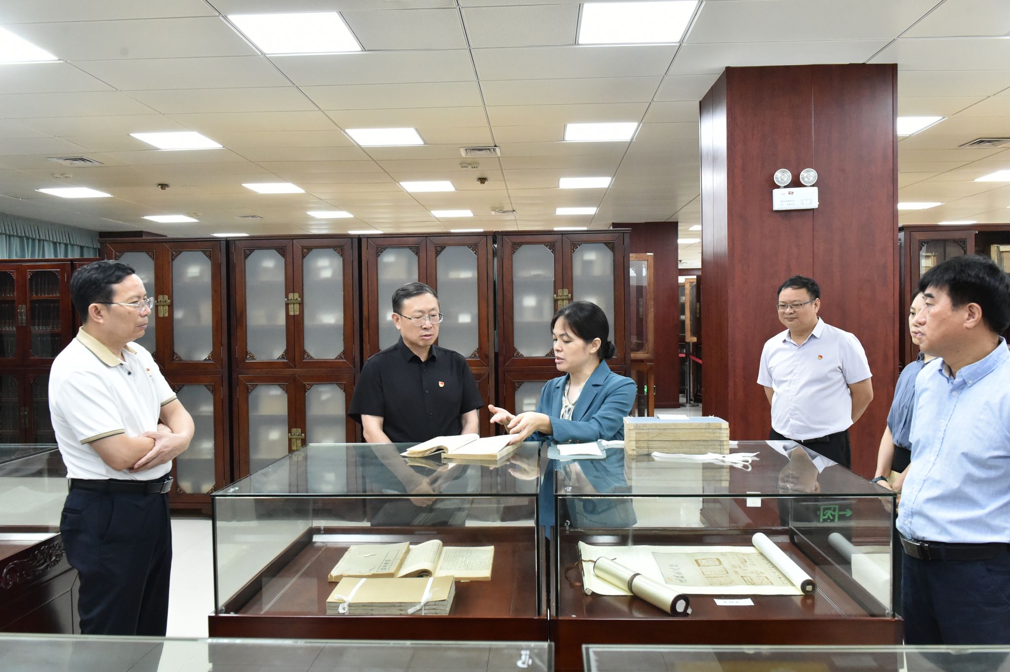 7月1日,校党委书记卞成林到相思湖校区图书馆调研指导工作,深入古籍与地方民族文献信息中心,实地查看馆藏设施与安防设备的运行状况,了解少数民族古籍藏书、古籍特藏数字化、人才队伍建设以及古籍研究与利用等方面的情况。