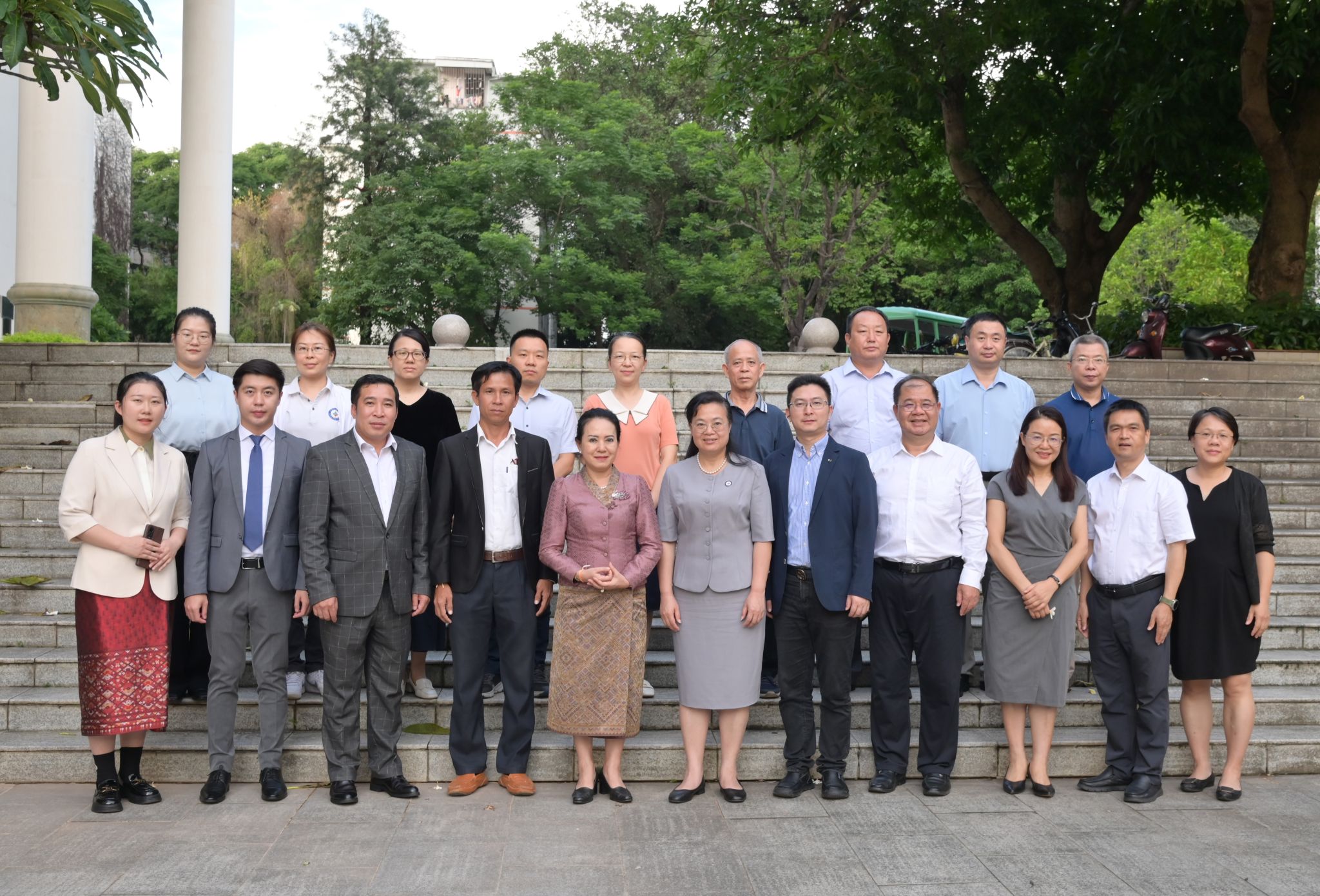 7月3日下午,taptap点点体育校长韦仕珍会见老挝国家社会与经济科学院副院长康拉曦•乔本潘一行。双方在国际教育综合楼一楼会议室召开座谈会。
