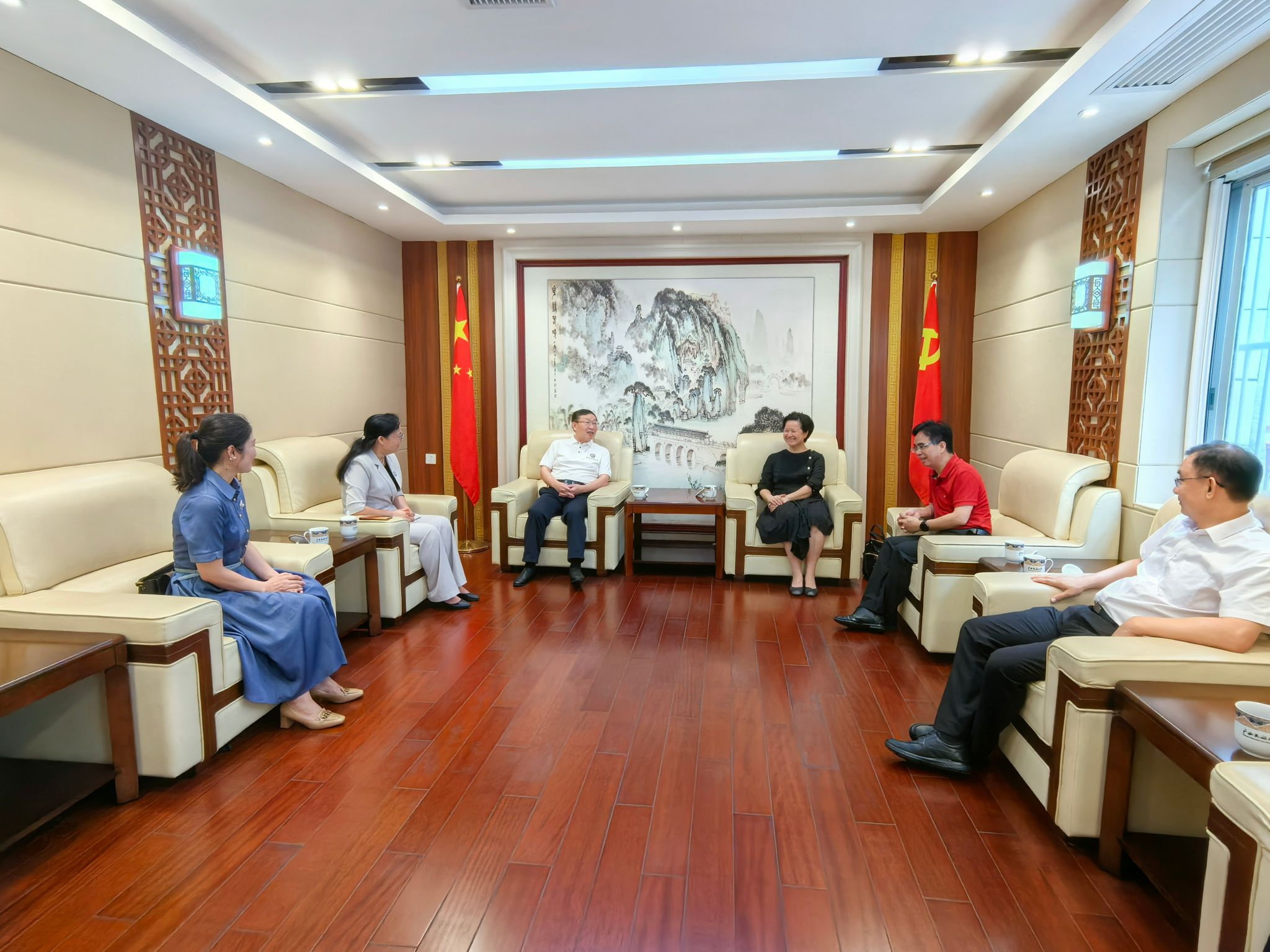 7月5日上午,广西民族师范学院党委书记曹迎,副校长韦茂斌、郑振锋一行到taptap点点体育调研交流。taptap点点体育党委书记卞成林,校长韦仕珍会见曹迎一行。座谈交流会在国际教育综合楼一楼会议室召开,韦仕珍和学校党委副书记陈铭彬、副校长吕俊彪出席会议。座谈会由陈铭彬主持。