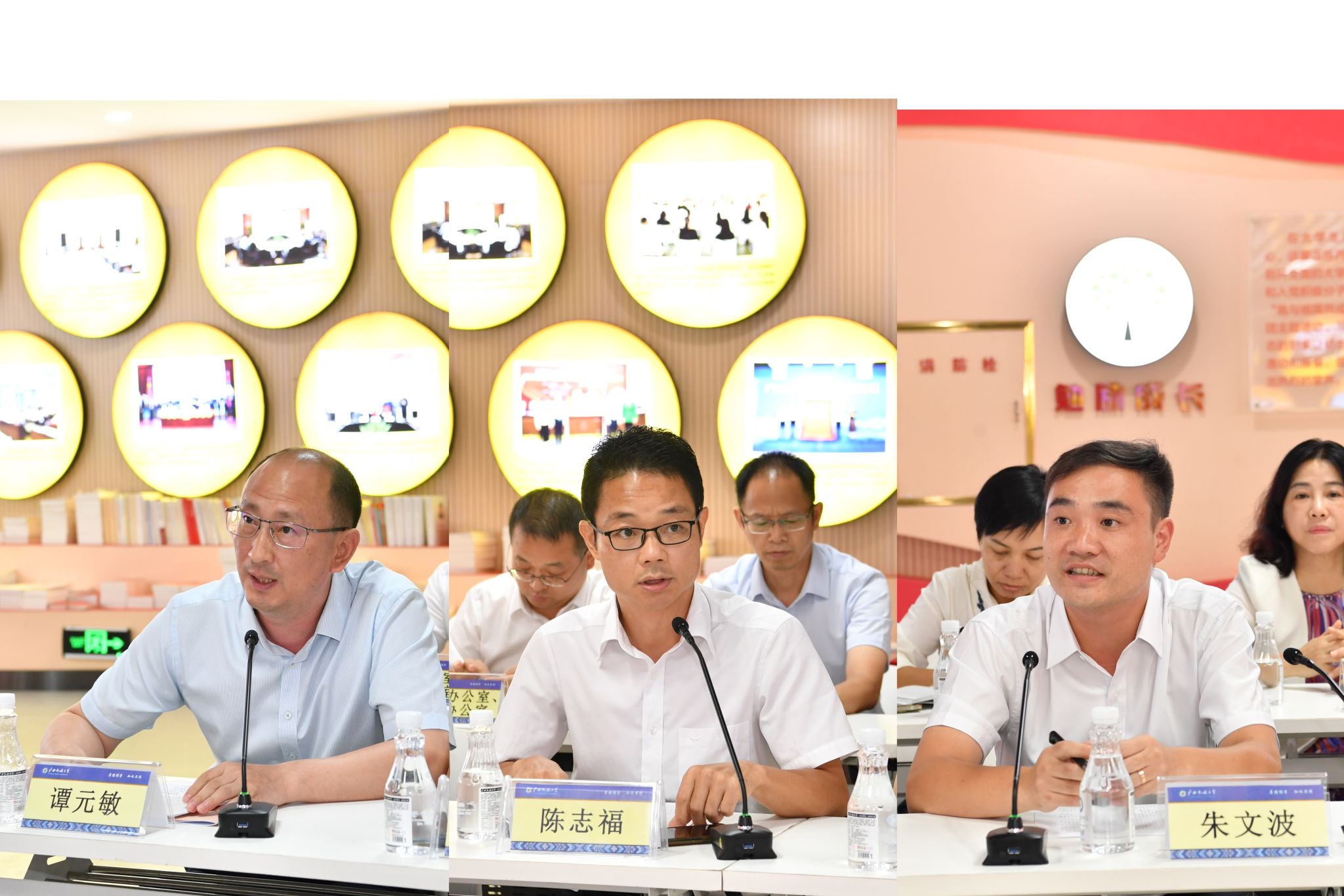 会上,教师代表聘用合同签订仪式举行。韦仕珍与第四轮岗位聘用教师代表马克思主义学院谭元敏教授、文学院李惠玲教授等五位教师代表签订聘用合同书并合影留念。