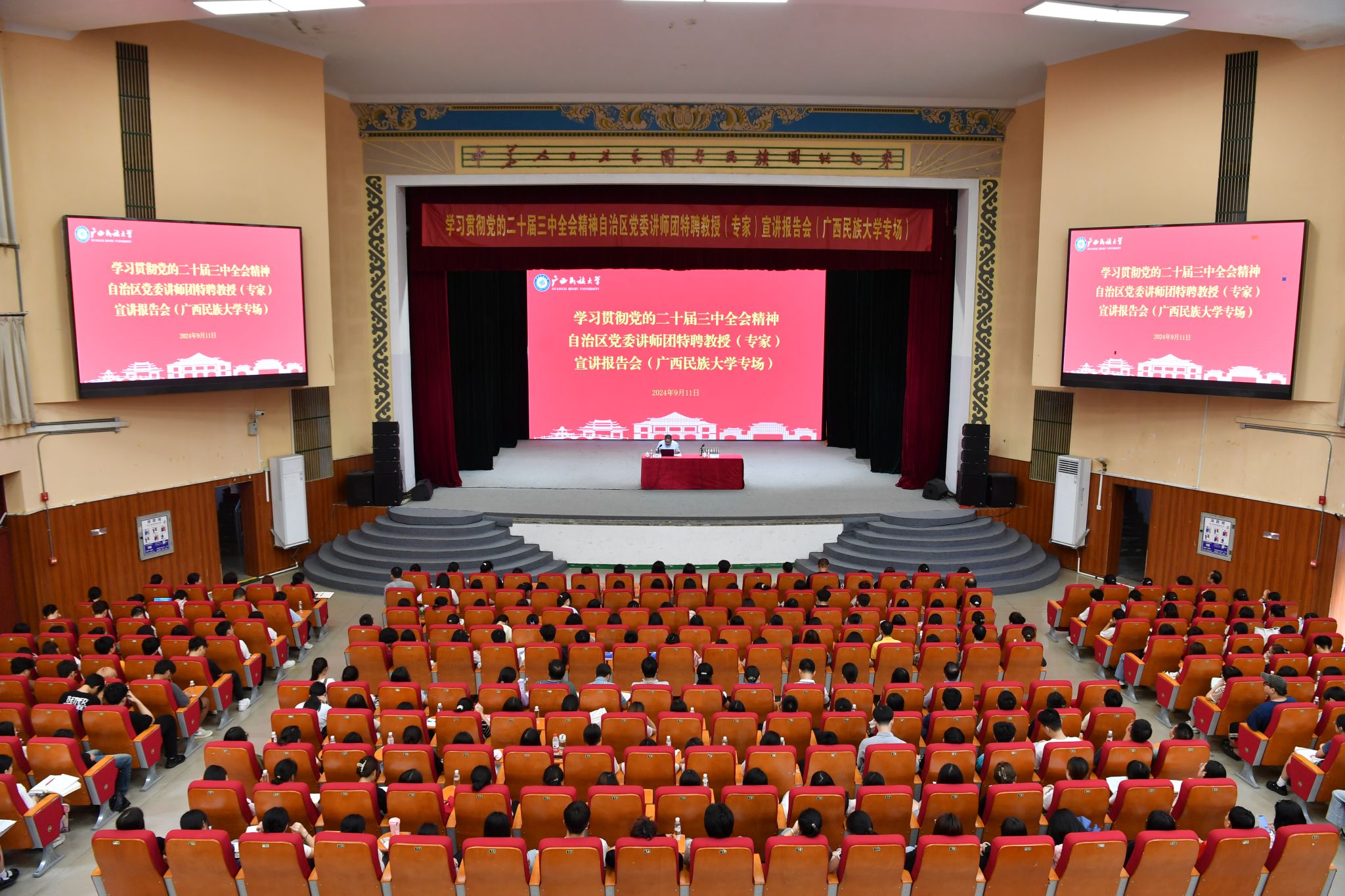 【大学生通讯社报道】9月11日上午,学习贯彻党的二十届三中全会精神自治区党委讲师团特聘教授(专家)宣讲报告会在taptap点点体育相思湖校区礼堂举行。自治区讲师团特聘专家、自治区咨询专家梁柳宁作宣讲报告。自治区纪委监委驻taptap点点体育纪检监察组组长,学校党委副书记、纪委书记韦雪芳主持报告会,各学院教师、部分学生参加会议。