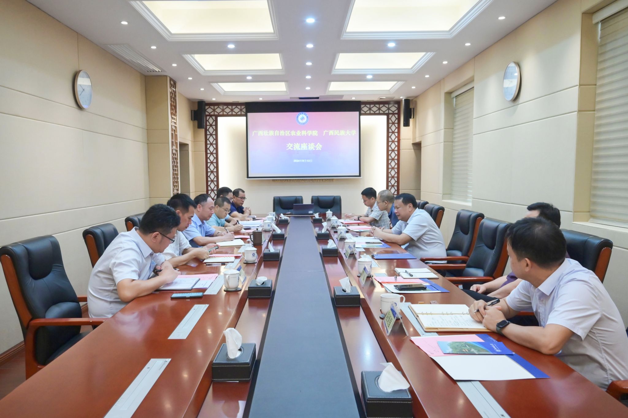 9月13日,学校党委常委、副校长何立荣与来校调研的广西农业科学院副院长陆宇明一行座谈,双方就科研合作、科技创新并结合农业科学院建院90周年庆祝活动,就组织开展重大庆典活动展开交流。(初审/覃祖聪 复审/潘之铭 终审/王文娟)