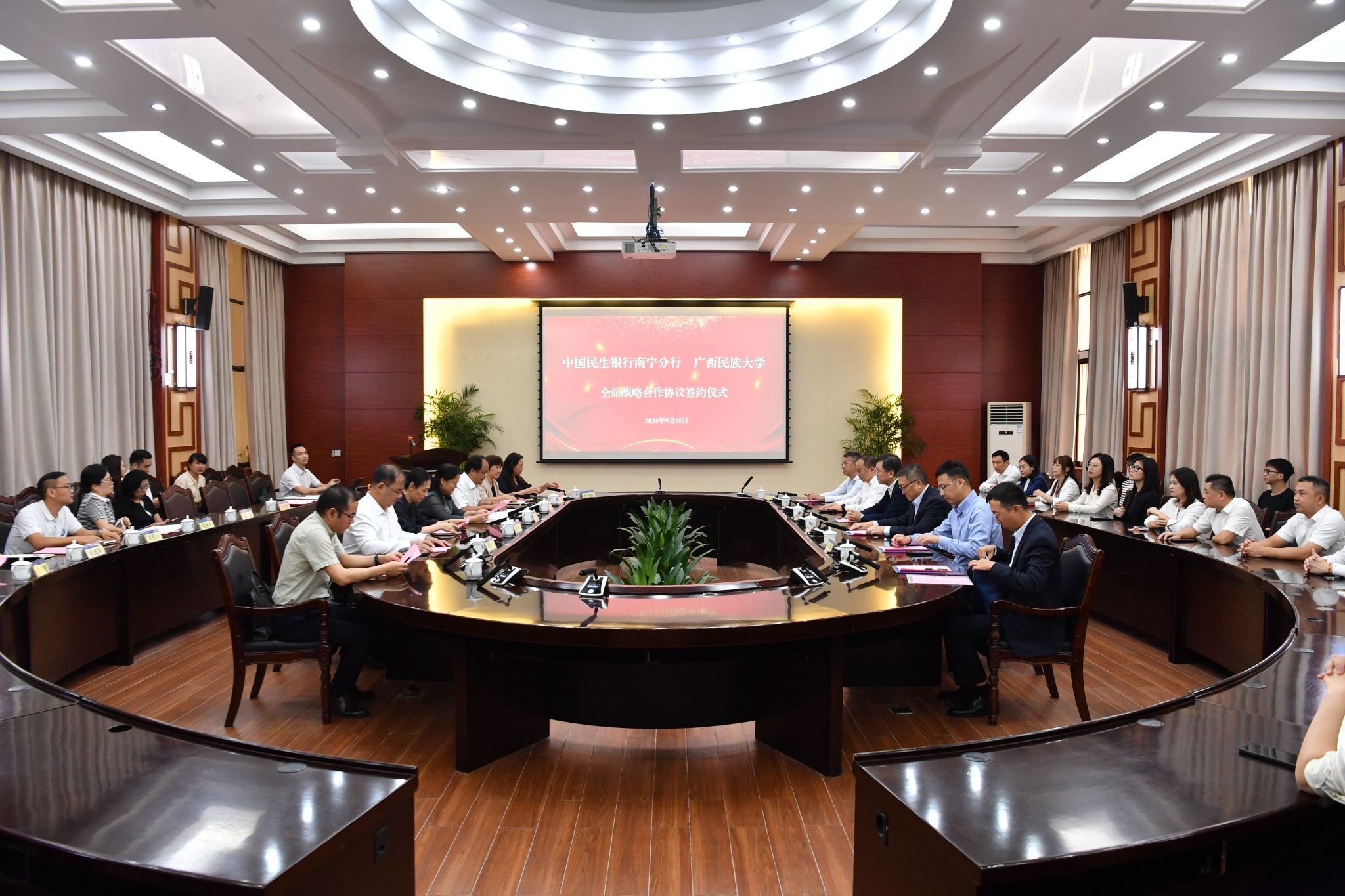 中国民生银行南宁分行行长闫新国一行,taptap点点体育财务处、学生工作部(处)、国际合作与交流处、国际教育学院、经济学院等有关单位负责人参加签约仪式。(初审:黄素心 复审:荣子卿 终审:王文娟)
