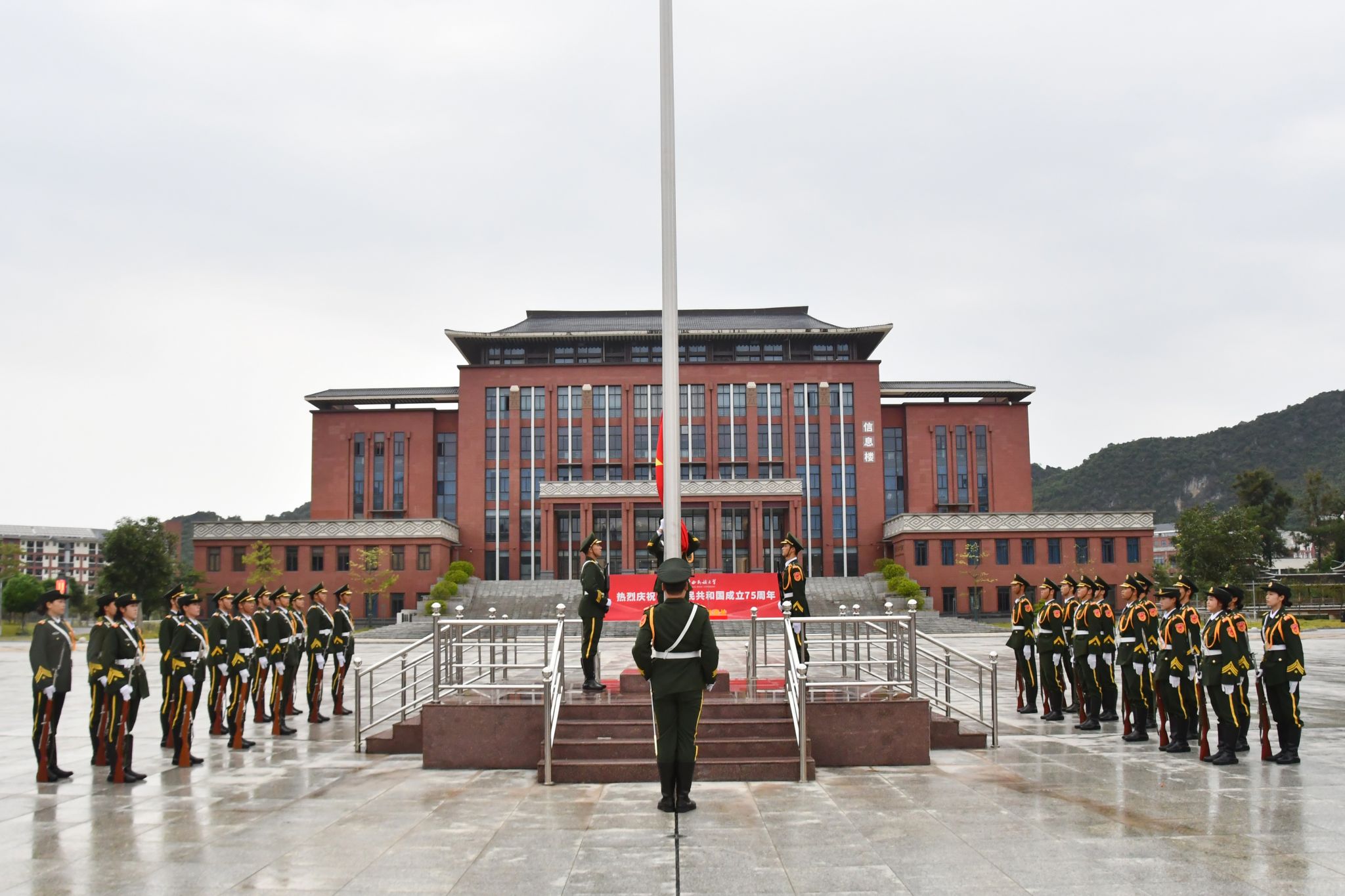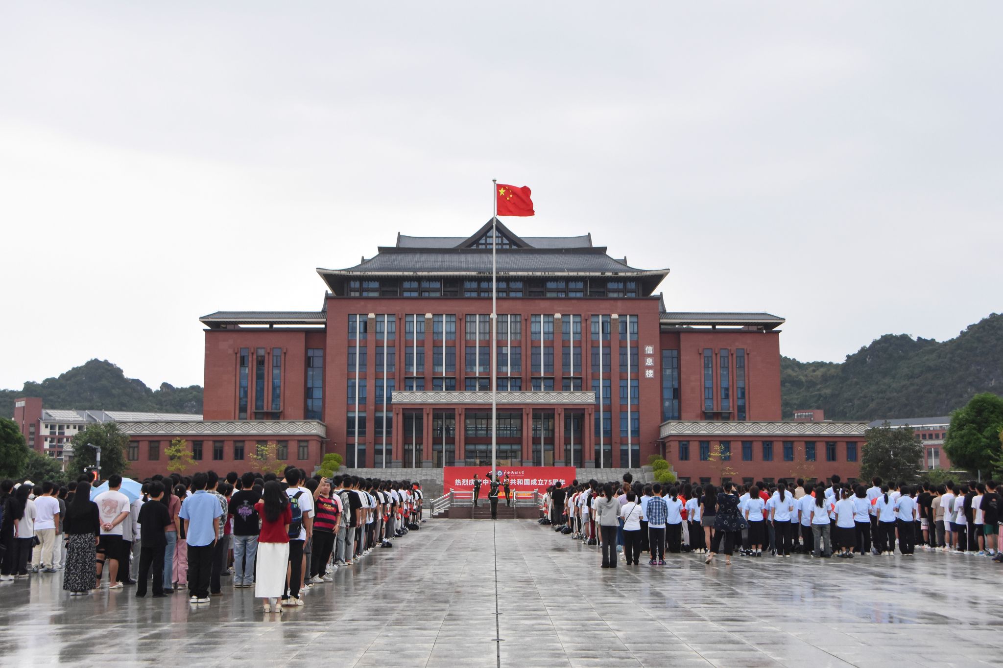 【大学生通讯社报道】中华广袤同此刻,国歌激昂随风扬。10月1日,taptap点点体育在相思湖校区、思源湖校区、武鸣校区举行升旗仪式。学校党委书记卞成林在相思湖校区出席活动。学校党委副书记、校长韦仕珍在民族广场参加自治区组织的升旗仪式。校领导陈铭彬、韦雪芳、邓国彬、吕俊彪、何立荣、姜明国及师生代表在校参加,共同庆祝中华人民共和国成立75周年。