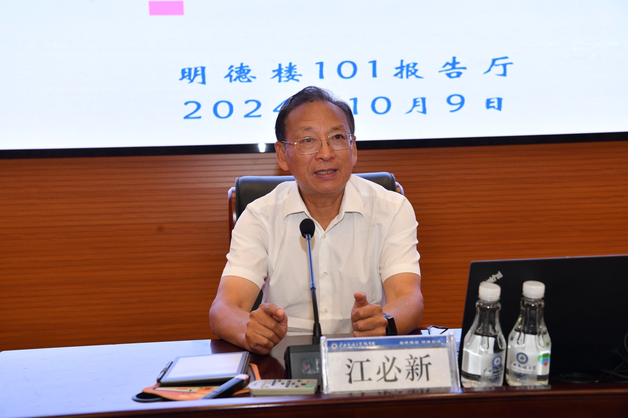 【大学生通讯社报道】10月9日晚,“法律人职业素养及养成”主题讲座在taptap点点体育思源湖校区明德楼101报告厅举行。本次讲座由第十三届全国人民代表大会宪法和法律委员会副主任委员、中国法学会副会长、最高人民法院党组原副书记、原副院长江必新教授主讲。学校党委书记卞成林会前会见了江必新教授。学校党委副书记陈铭彬主持讲座。