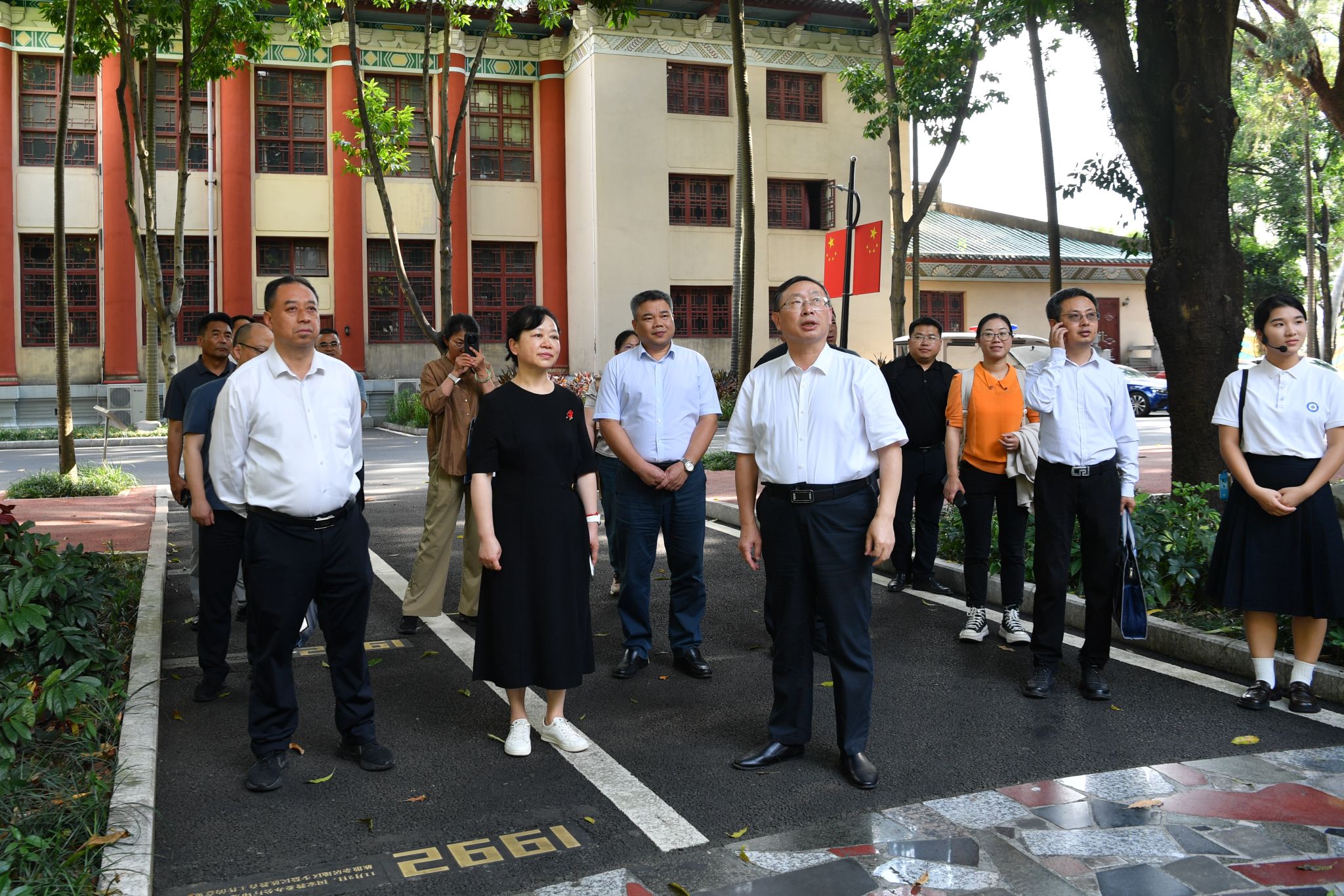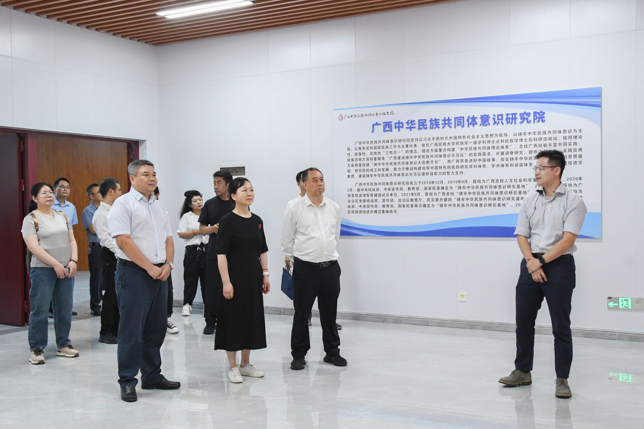 调研组先后到学校铸牢中华民族共同体意识体验园、和园、校史馆、广西现代文学馆、广西中华民族共同体意识研究院调研,实地考察学校学习贯彻习近平新时代中国特色社会主义思想情况和铸牢中华民族共同体意识教育情况,深入了解学校办学历程、教育教学和科学研究成果、学校作家作品及广西现代文学作家作品等。