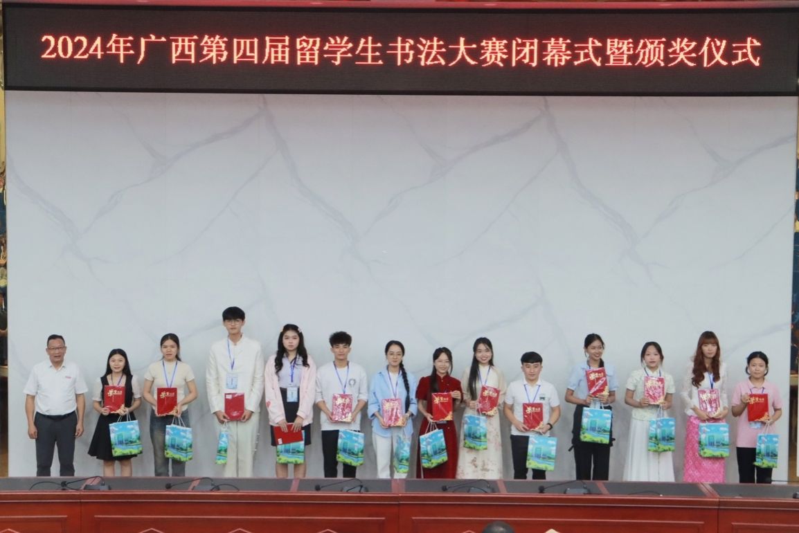 此次比赛吸引了广西区内28所高校的127名留学生参赛,选手来自俄罗斯、巴基斯坦、尼日利亚、泰国、越南、老挝等国家。我校积极组织,选派越南留学生阮河芳、陈氏日夏、阮氏明秋,老挝留学生梁礼赛、李黛参赛。赛前,留学生们认真备赛,不断打磨练习,老师们悉心指导,提供反馈和鼓励;比赛过程中,留学生们认真书写,展现汉字书写技巧,最终斩获3个特等奖、1个一等奖和1个二等奖。(初审:周艳鲜 编辑:孙畅 复审:潘之铭 终审:王文娟)