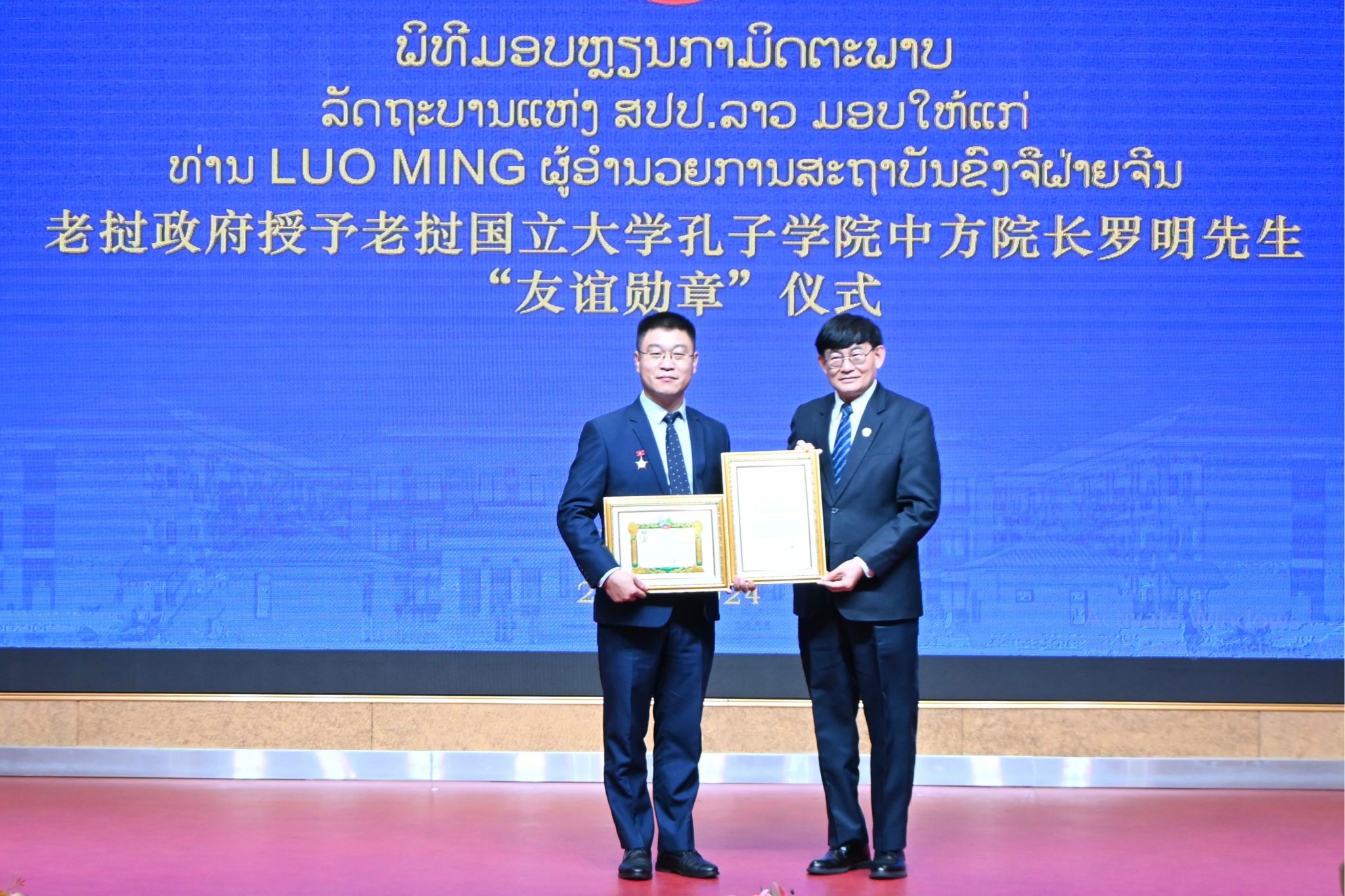 老挝总理宋赛·西潘敦签署总理令,决定授予老挝国立大学孔子学院中方院长罗明“友谊勋章”,以表彰罗明在任期间为培养老挝本土汉语人才、推进老中文化教育合作交流和老中友好事业发展做出的杰出贡献。“友谊勋章”是老挝政府授予有突出贡献的外国友人的最高等级勋章。
