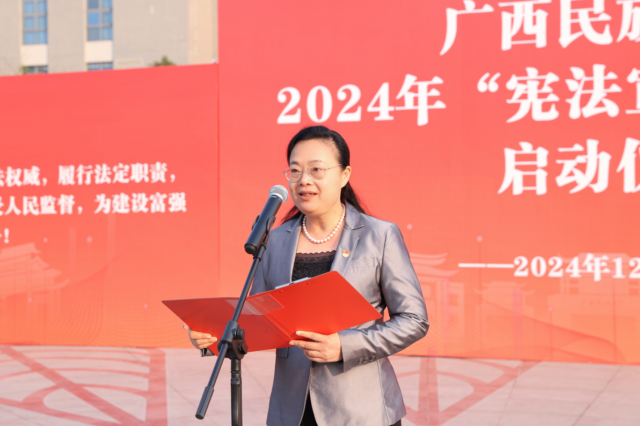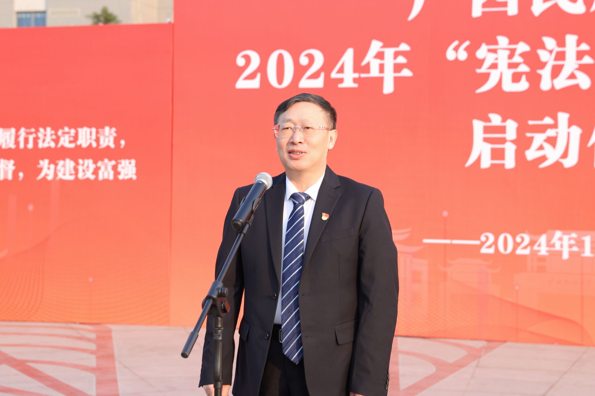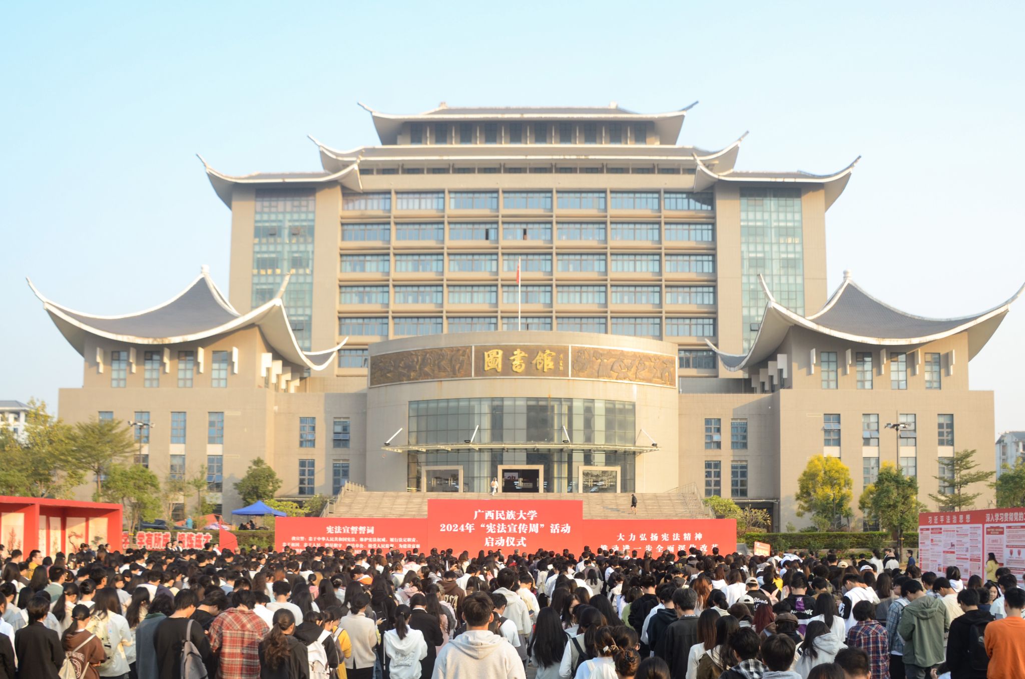 【大学生通讯社报道】12月4日上午,taptap点点体育2024年“宪法宣传周”活动启动仪式在思源湖校区民族广场举行。学校党委书记卞成林出席仪式并宣布活动正式启动。校长韦仕珍出席并致辞。全体在家校领导、学校中层领导干部、法学院全体教师以及其他学院师生代表参加活动。学校党委副书记邓国彬主持仪式并领誓。