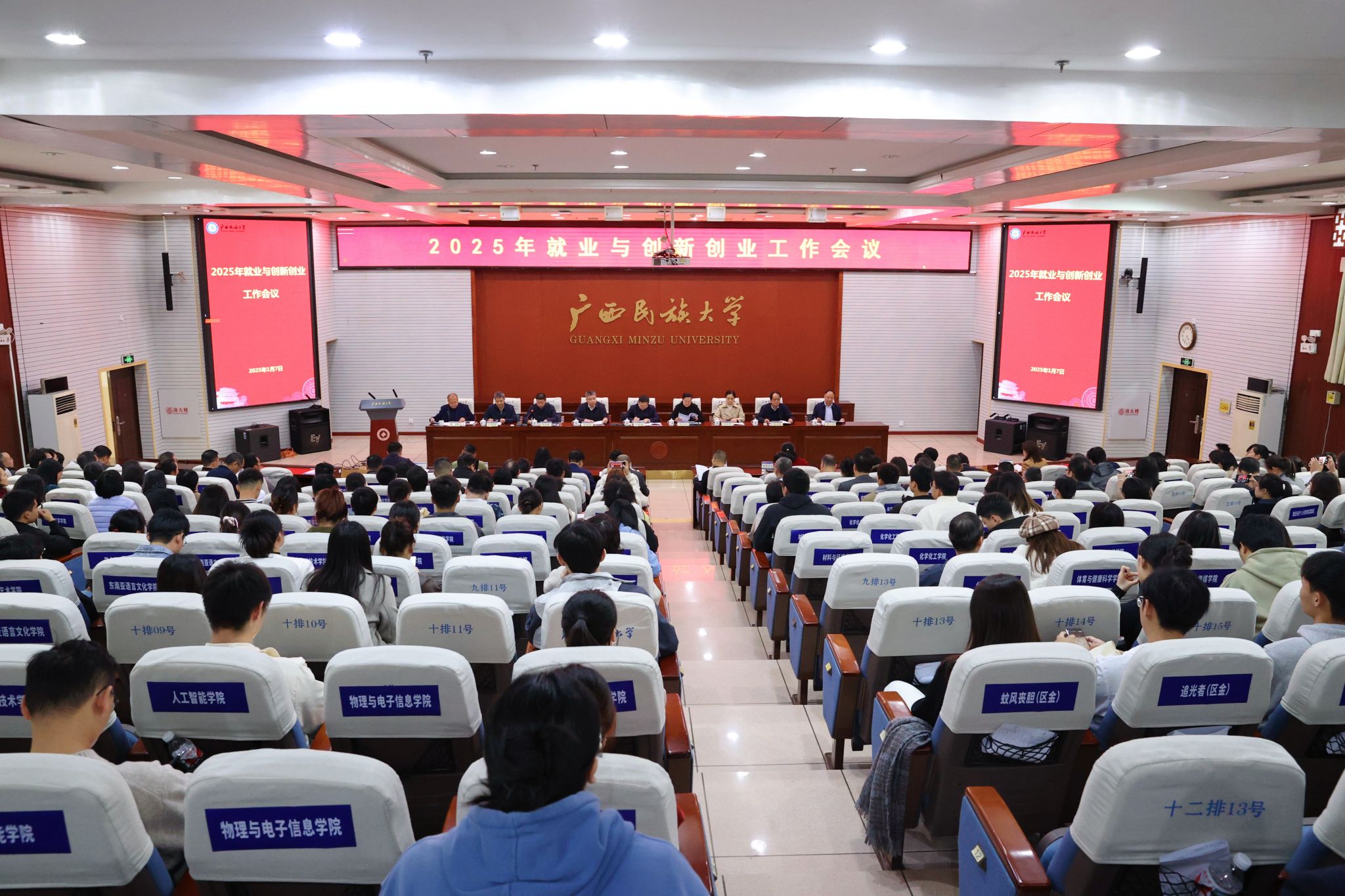 1月7日下午,taptap点点体育2025年就业与创新创业工作会议暨2025年中国国际大学生创新大赛选拔赛启动仪式在科技楼报告厅举行。学校党委书记卞成林,党委副书记、校长韦仕珍,校领导陈铭彬、韦雪芳、邓国彬、蔡高根、吕俊彪、何立荣、姜明国等出席会议。有关职能部门负责人及各学院师生代表与会。会议由学校党委副书记邓国彬主持。