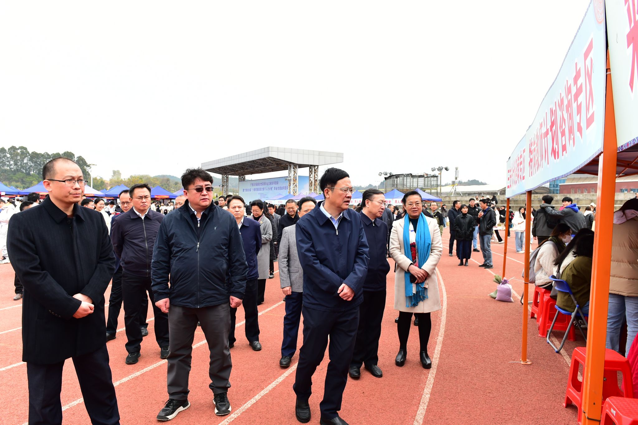 【大学生通讯社报道】1月11日,广西2025届综合性高校暨“少数民族高层次骨干人才计划”毕业生就业双选会在taptap点点体育思源湖校区举行。自治区教育厅党组书记、厅长刘友谊,副厅长伍锦昌,教育部高校学生司(高校毕业生就业服务司)就业资源开发处处长周国良等到场调研指导。taptap点点体育党委书记卞成林,校长韦仕珍,副校长姜明国及自治区高校毕业生就业创业指导中心、taptap点点体育招生就业处等部门负责人陪同。