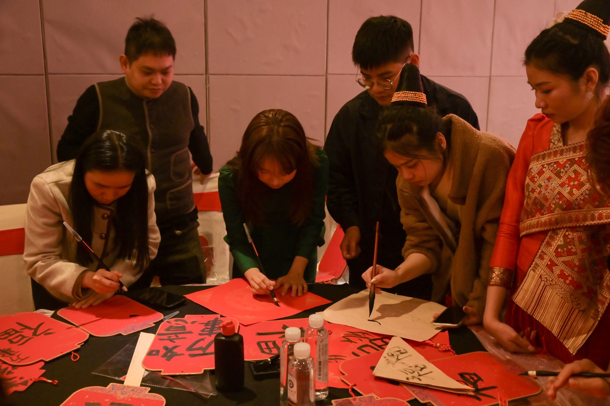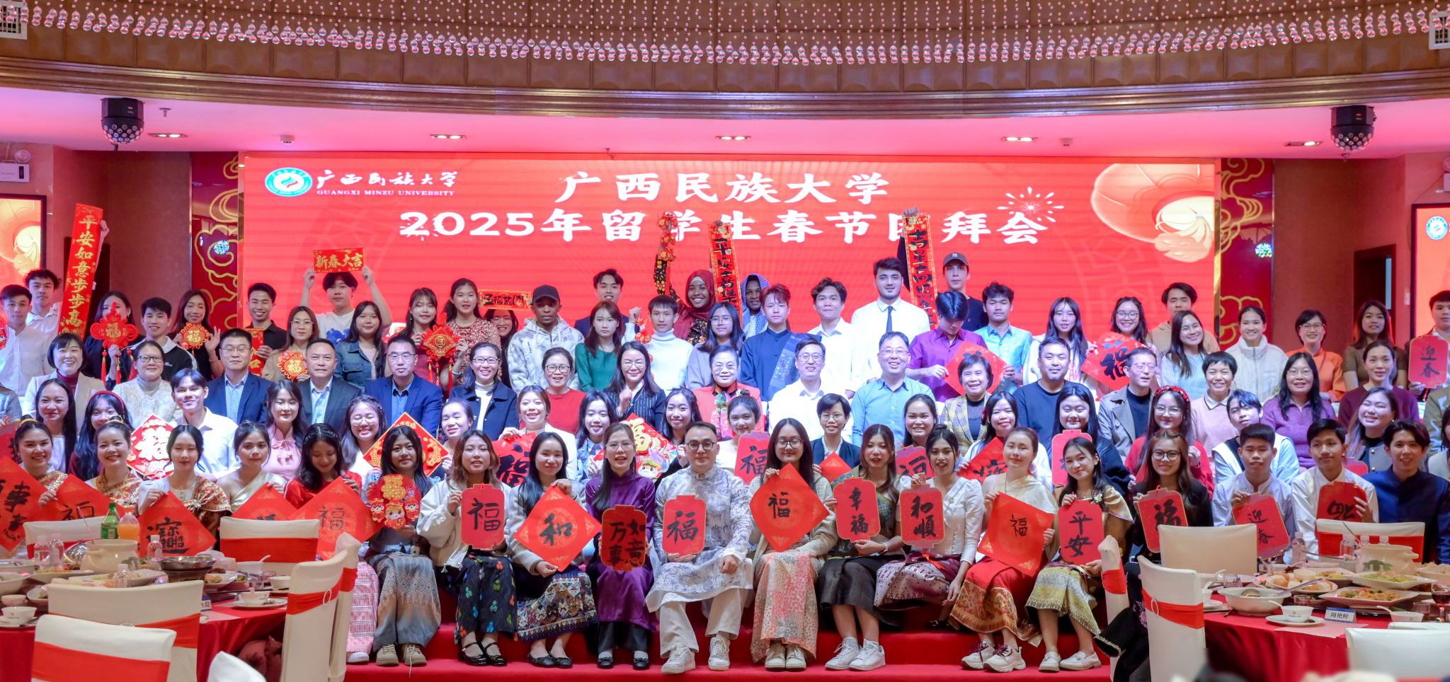 在中国传统文化体验环节,近180名留学生一同包饺子、写春联、写“福”字,学校领导向在场每一名同学赠送新年礼物。表演环节,各国留学生精心编排的节目,将现场气氛推向高潮,大家在欢声笑语中品尝美食,分享喜悦互赠祝福,师生在欢乐的氛围里感受中华文化的独特魅力。(初审:牟永红 复审:荣子卿 终审:孙寿媚)
