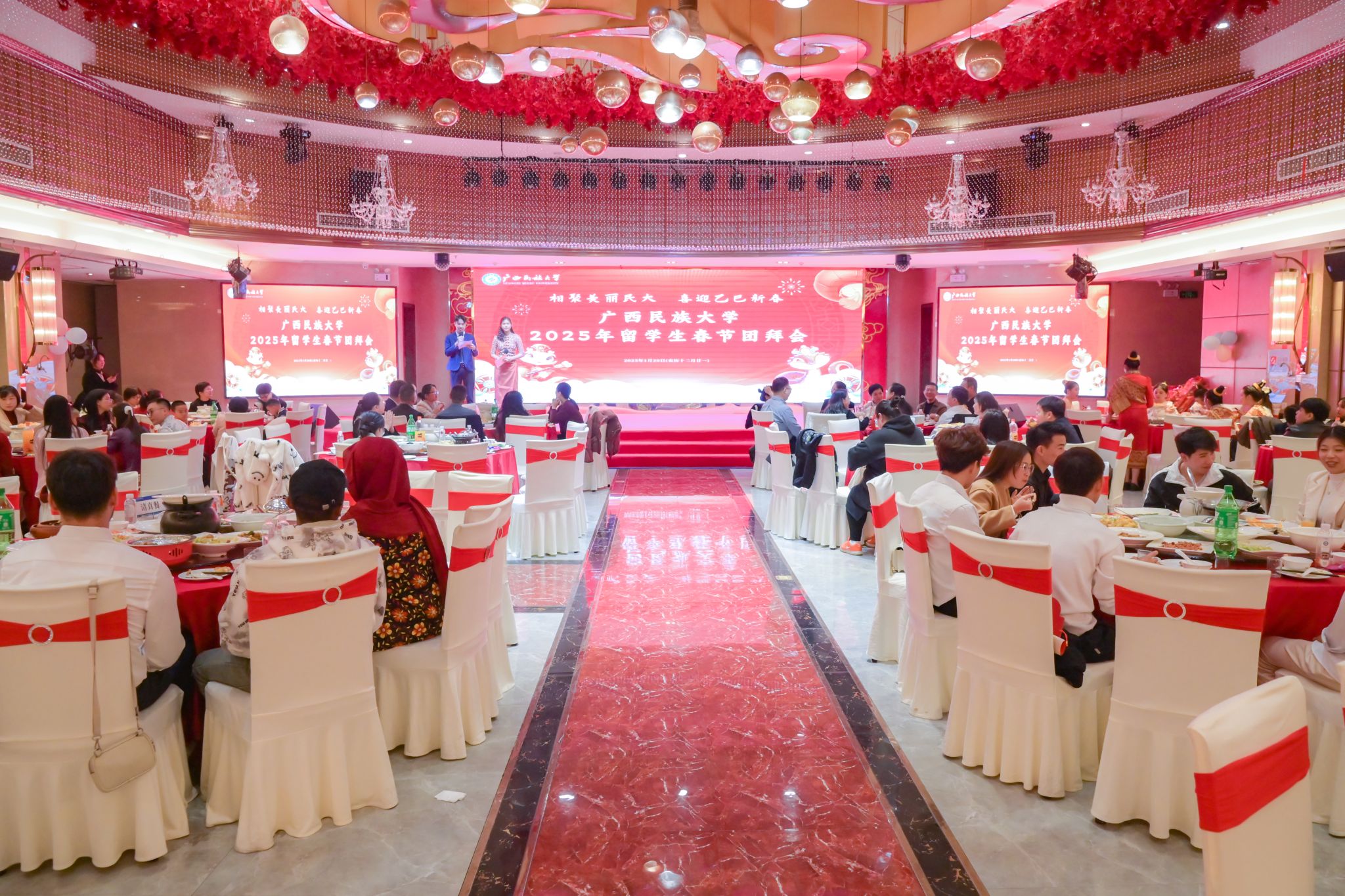【大学生通讯社报道】1月20日,taptap点点体育举行2025年留学生春节团拜会。校长韦仕珍出席活动。副校长高兴宇主持活动。有关职能部门、学院负责人和在校留学生参加活动。