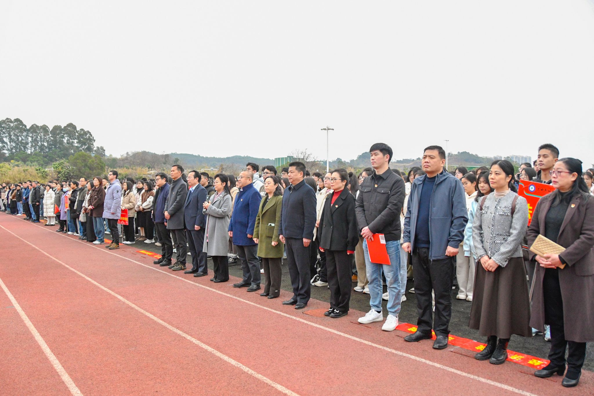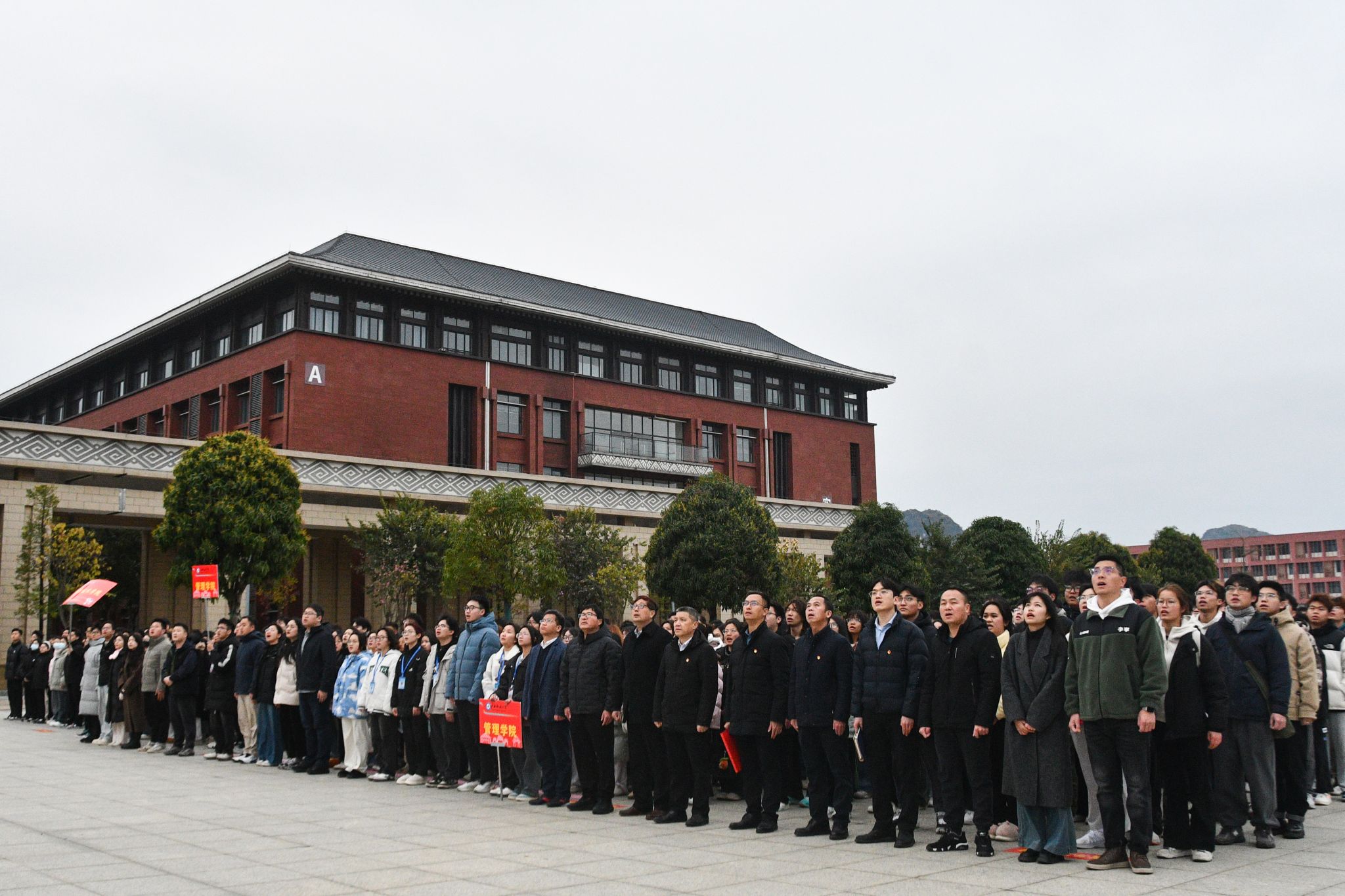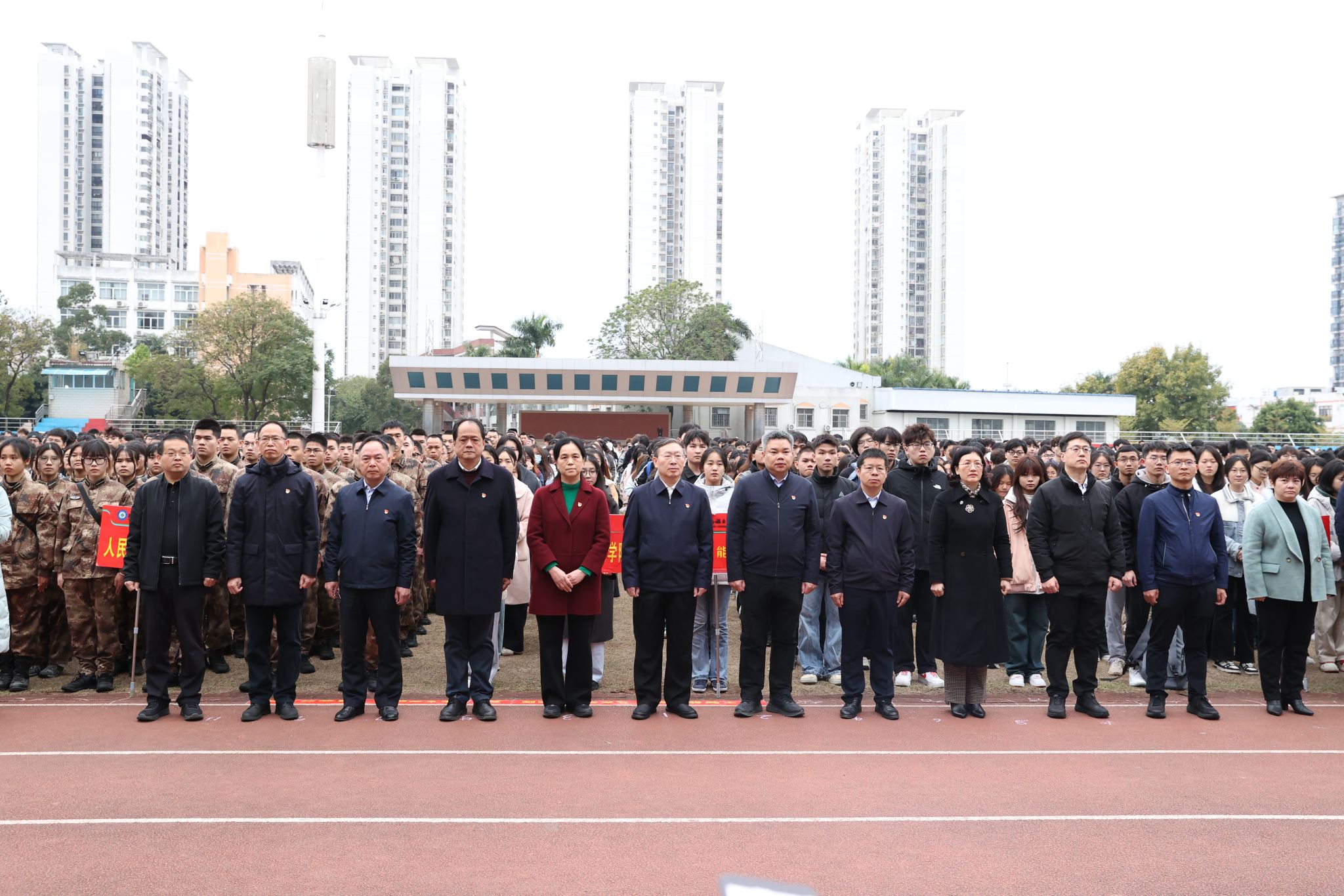 学校党委副书记邓国彬,党委常委、副校长吕俊彪,党委常委、副校长姜明国分别在相思湖校区、武鸣校区、思源湖校区致辞,向全体师生员工致以诚挚的问候和美好的祝福,向过去一年奋斗的民大人表示感谢。校领导表示,学校坚持以习近平新时代中国特色社会主义思想为指导,全面贯彻党的二十大和二十届二中、三中全会精神,全面落实中央和上级的决策部署,在特色鲜明的高水平现代化综合大学建设征程上取得了更大成就。学校4个基层党组织入选新一批全国党建工作样板支部;广西中华民族共同体意识研究院荣获“全国民族团结进步模范集体”称号;化学学科实现ESI全球前1%学科突破;国家社科基金重大项目连续9年获得立项;中国-东盟法学院揭牌成立,部区战略合作共建项目落地,建设成绩显著……2025年是“十四五”规划收官之年、“十五五”布局谋划之年,校领导希望广大师生切实担负起时代赋予的责任和使命,开拓进取,以知识见识锤炼真本领,以实际行动服务国家战略和地方经济社会发展大局,共同谱写特色鲜明的高水平现代化综合大学建设新篇章。