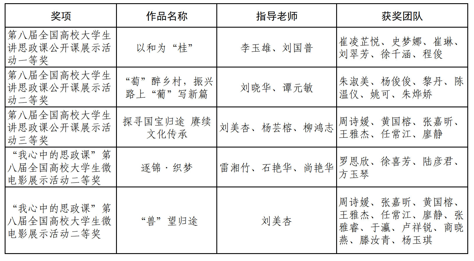 获奖名单