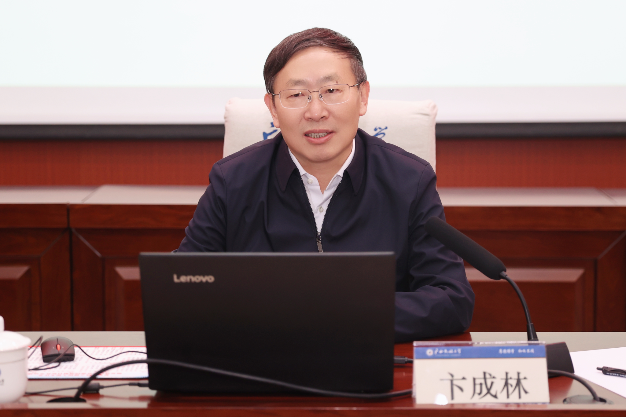 【大学生通讯社报道】3月21日上午,校党委书记卞成林在科技楼报告厅为全体专职辅导员作专题培训。校党委副书记邓国彬主持培训会。