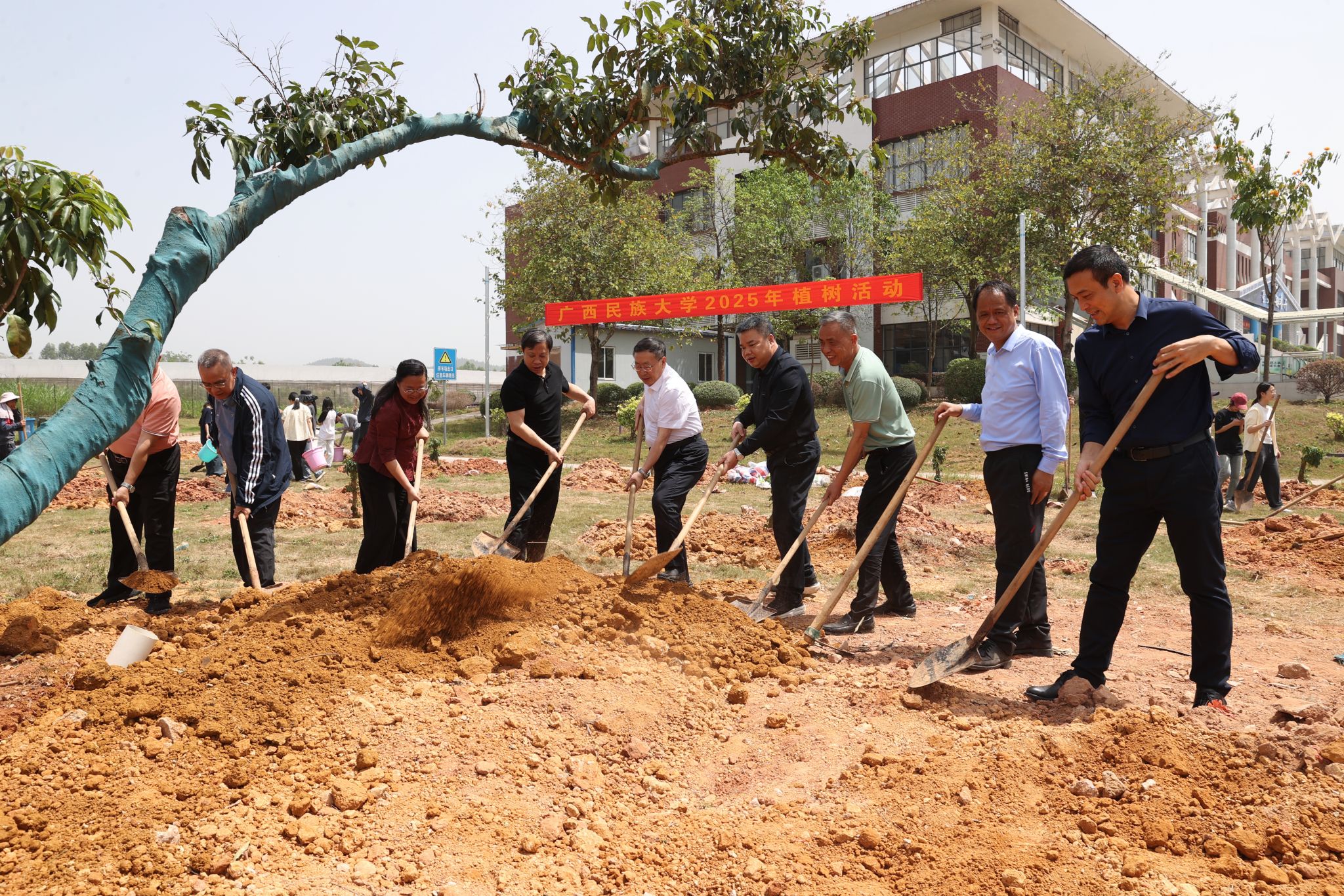 本次种植树苗由灵山县捐赠,精选仙进奉、桂味、妃子笑等特色荔枝树种,三校区共计植树331株。(初审:姚伟用 编辑:刘梦娇 实习编辑:黎倩雅 复审:潘之铭 终审:孙寿媚)