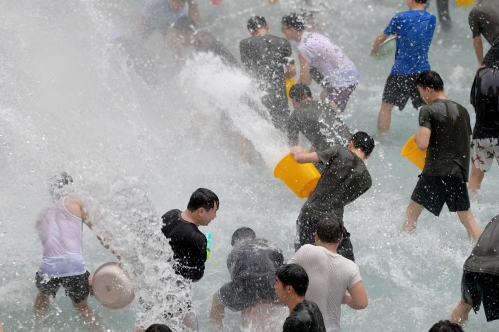 动感的旋律响起,同学们互相泼水祝福,活动现场犹如一片欢快的海洋。
