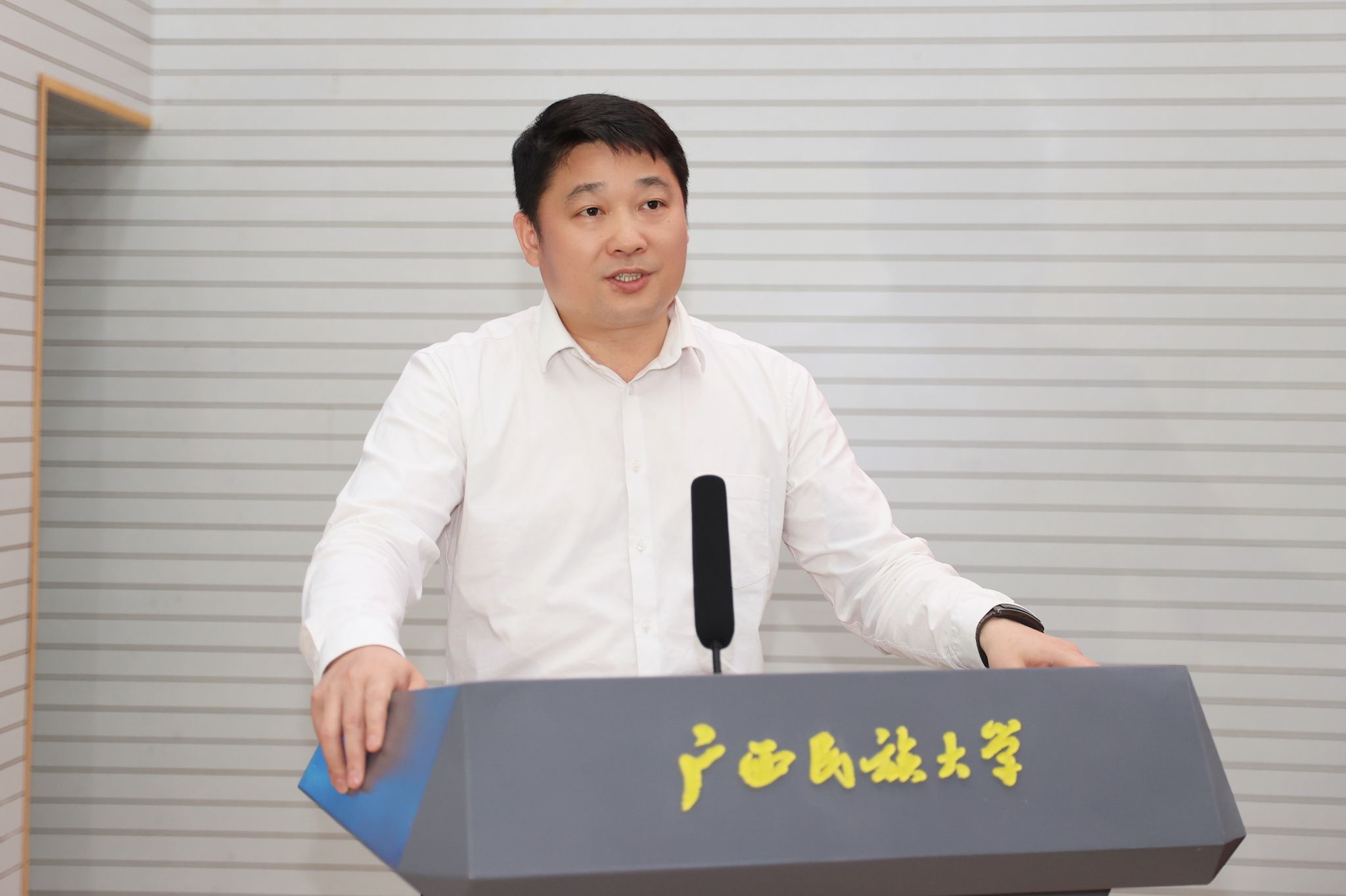 李海鸥致辞表示,在科技浪潮涌动的当下,科学家精神不仅是职业态度,更是人生信仰。同学们应不忘初心、砥砺前行,在新时代书写辉煌。相信在学校有力的领导下,民大学子将在科研道路上大步迈进。