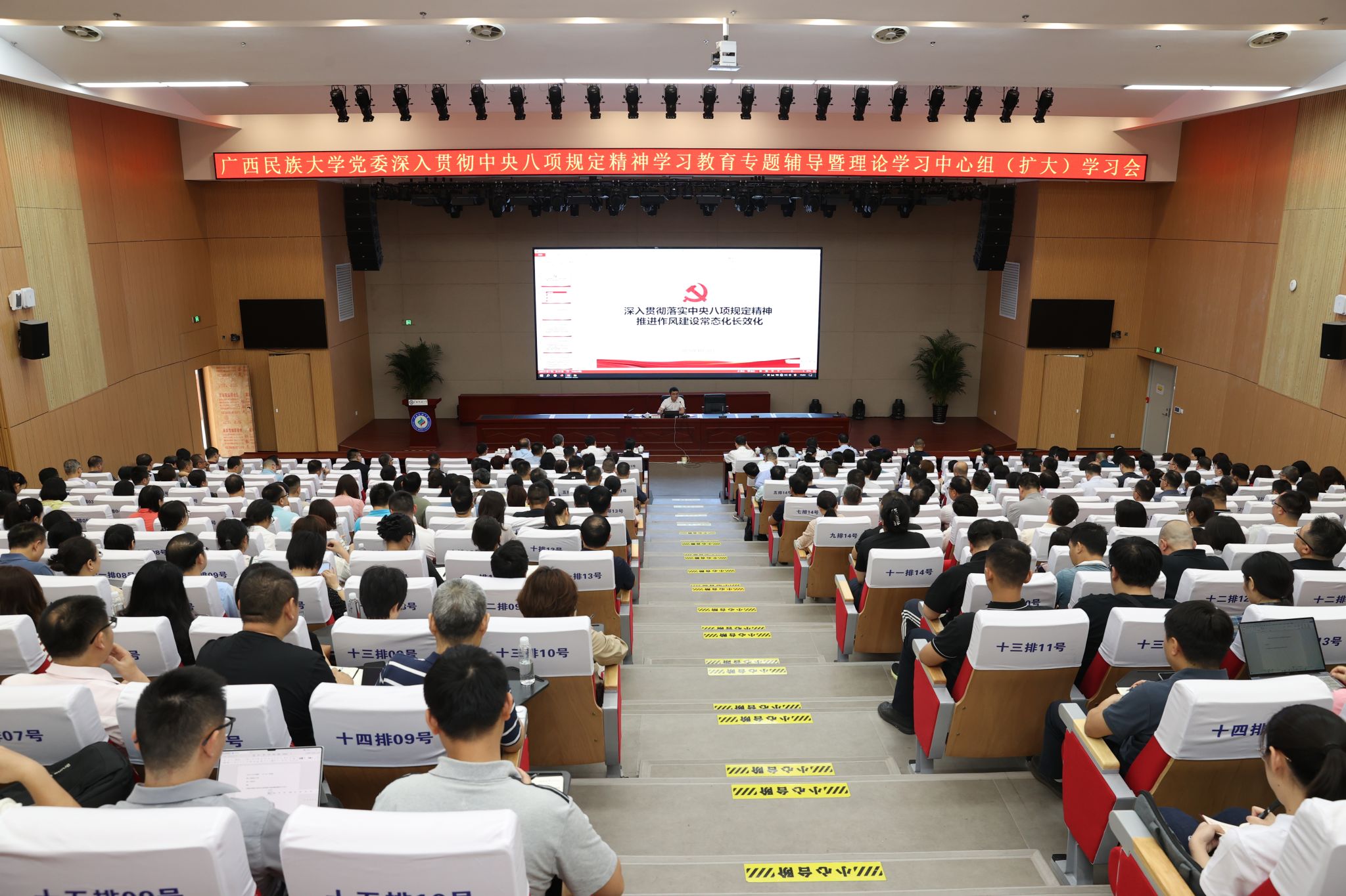 卞成林就进一步开展深入贯彻中央八项规定精神学习教育提出要求,一是提高政治站位,深化加强党的作风建设和中央八项规定及实施细则精神的学习、理解和掌握,切实增强贯彻落实的政治自觉、思想自觉、行动自觉,推进作风建设常态化长效化。二是聚焦目标任务贯彻落实,上好专题党课,做好专题学习研讨。强化警示教育,走好新时代党的群众路线,主动倾听师生群众心声,回应师生群众关切,从严从实做好问题查摆和集中整治,持续推动全面从严治党向纵深发展。三是坚持示范带动作用,把贯彻落实成效体现在实干为要、创新为魂,用业绩说话、让人民评价,扎实落实自治区党委八个“带头”要求,以作风建设新成效为学校事业高质量发展提供有力保障。