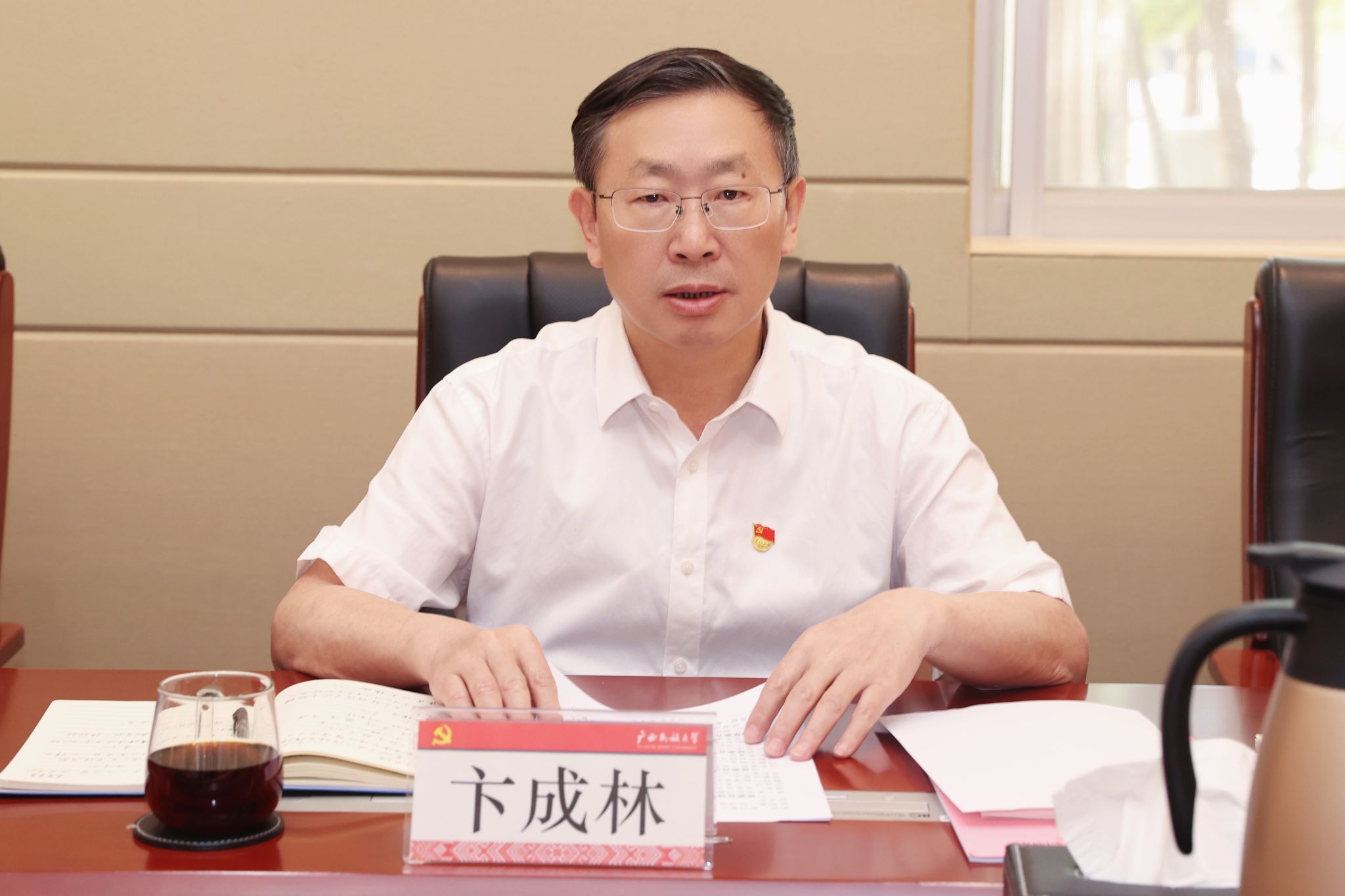 【大学生通讯社报道】5月12日上午,taptap点点体育党委书记卞成林在办公楼211会议室主持召开党委深入贯彻中央八项规定精神学习教育集中研讨暨理论学习中心组专题学习会,党委副书记、校长韦仕珍及全体在家校领导参加会议。