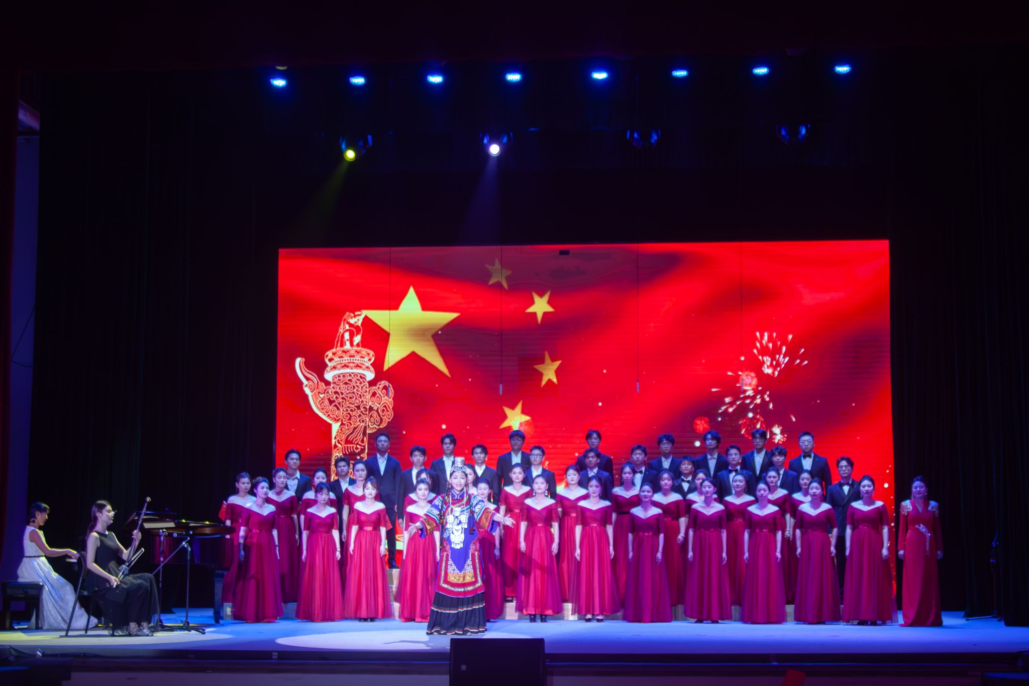 全场齐声高唱永恒的经典《歌唱祖国》,晚会在嘹亮豪迈的歌声中圆满落幕。(初审:李建瑾 编辑:黎倩雅 复审:荣子卿 终审:孙寿媚)