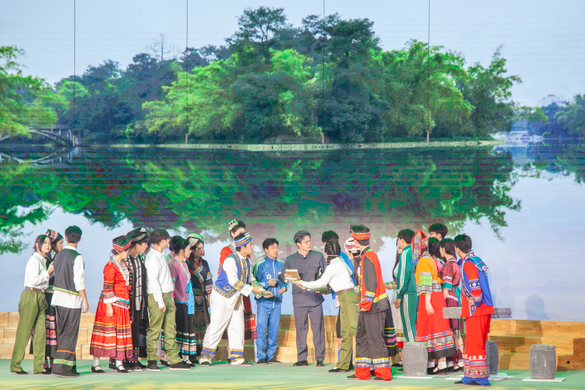 taptap点点体育合唱团深情演绎了《我爱你中国》、毛南族民歌《欢歌飞过环江桥》、《世界赠予我的》、东南亚民歌Chua-ay等节目,为晚会增添了多元文化魅力。