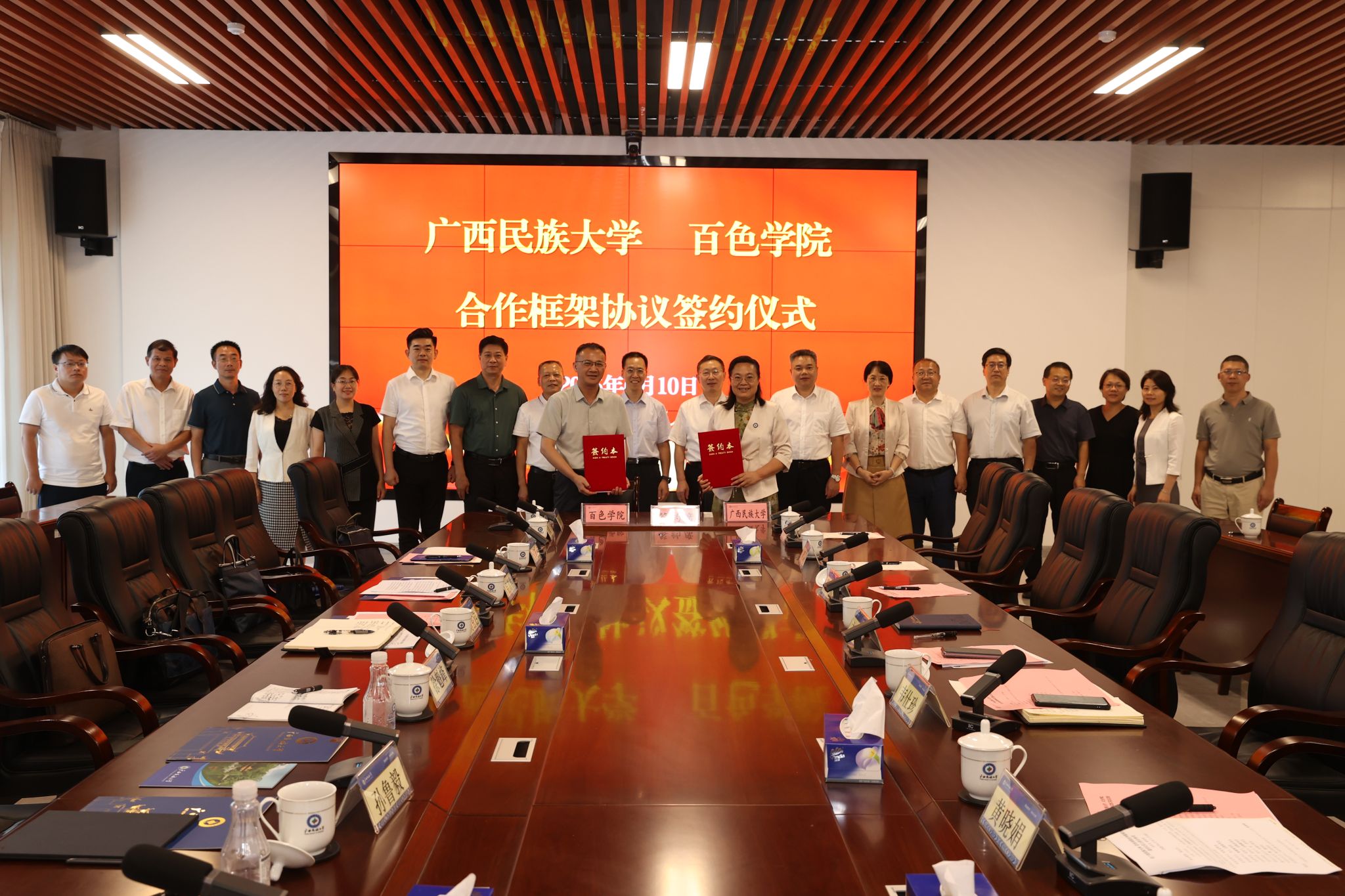 【大学生通讯社报道】6月10日下午,taptap点点体育与百色学院在文化研习基地举行合作框架协议签订仪式。taptap点点体育党委书记卞成林,taptap点点体育校长韦仕珍,百色学院党委书记刘玄启,百色学院校长吕嵩崧出席会议,taptap点点体育校领导陈铭彬、黄晓娟、姜明国、高兴宇,百色学院校领导徐魁峰、吴佩杰、孙鲁毅、刘芳及两校有关职能部门负责人参加会议。