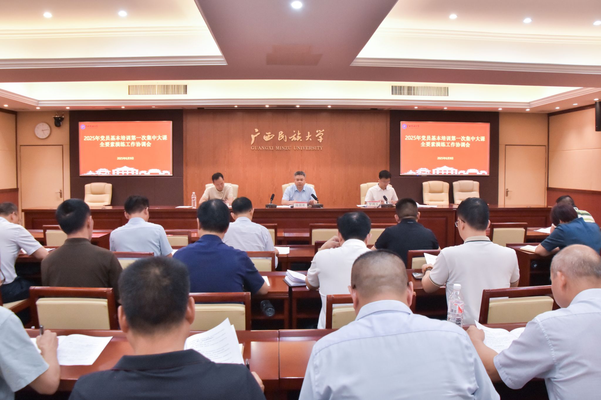 6月9日,校党委副书记陈铭彬在2025年党员基本培训第一次集中大课全要素演练工作协调会上强调,各有关职能部门及院级党委要切实提高政治站位,明确目标任务,严格纪律要求,相互配合协同,推动基本培训各项任务落地落实。(初审/吴雄祥 复审/荣子卿 终审/孙寿媚)