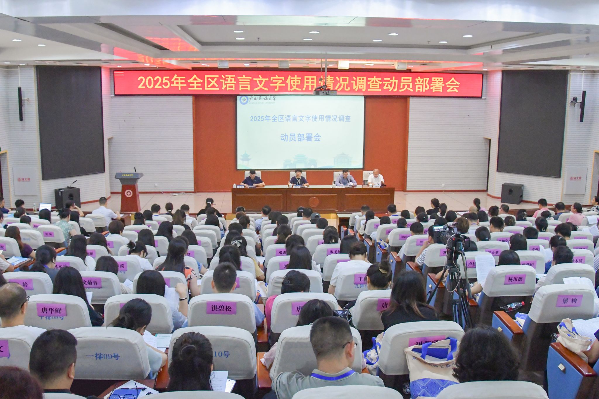 6月11日,2025年全区语言文字使用情况调查动员部署会在我校举行,自治区教育厅副厅长张旭凤,副校长姜明国,全国调查办专家、教育部语用所政研中心主任袁伟出席会议并致辞。(初审/黄秋艳 复审/荣子卿 终审/孙寿媚)