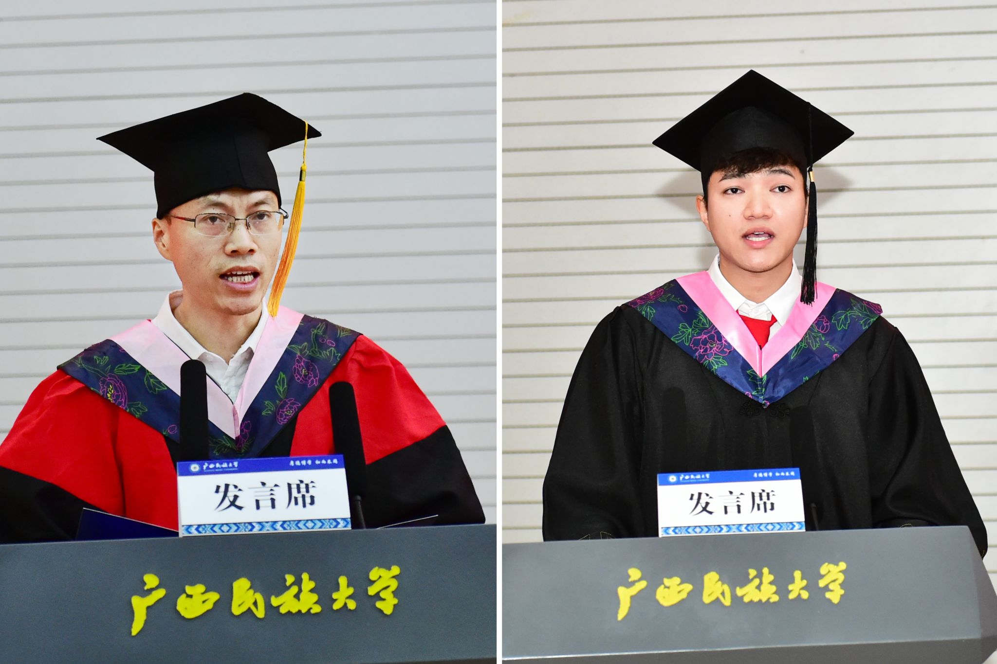 学生代表乔易分享自己在老挝和中国两地学习的感悟与成长,表达对母校、老师和同学的感恩之情。他代表全体毕业生承诺,将立志以所学知识服务中老教育合作,发挥汉语教师的专长,积极投身本土中文教育工作,为中老教育贡献力量,当好中老文化交流的桥梁。