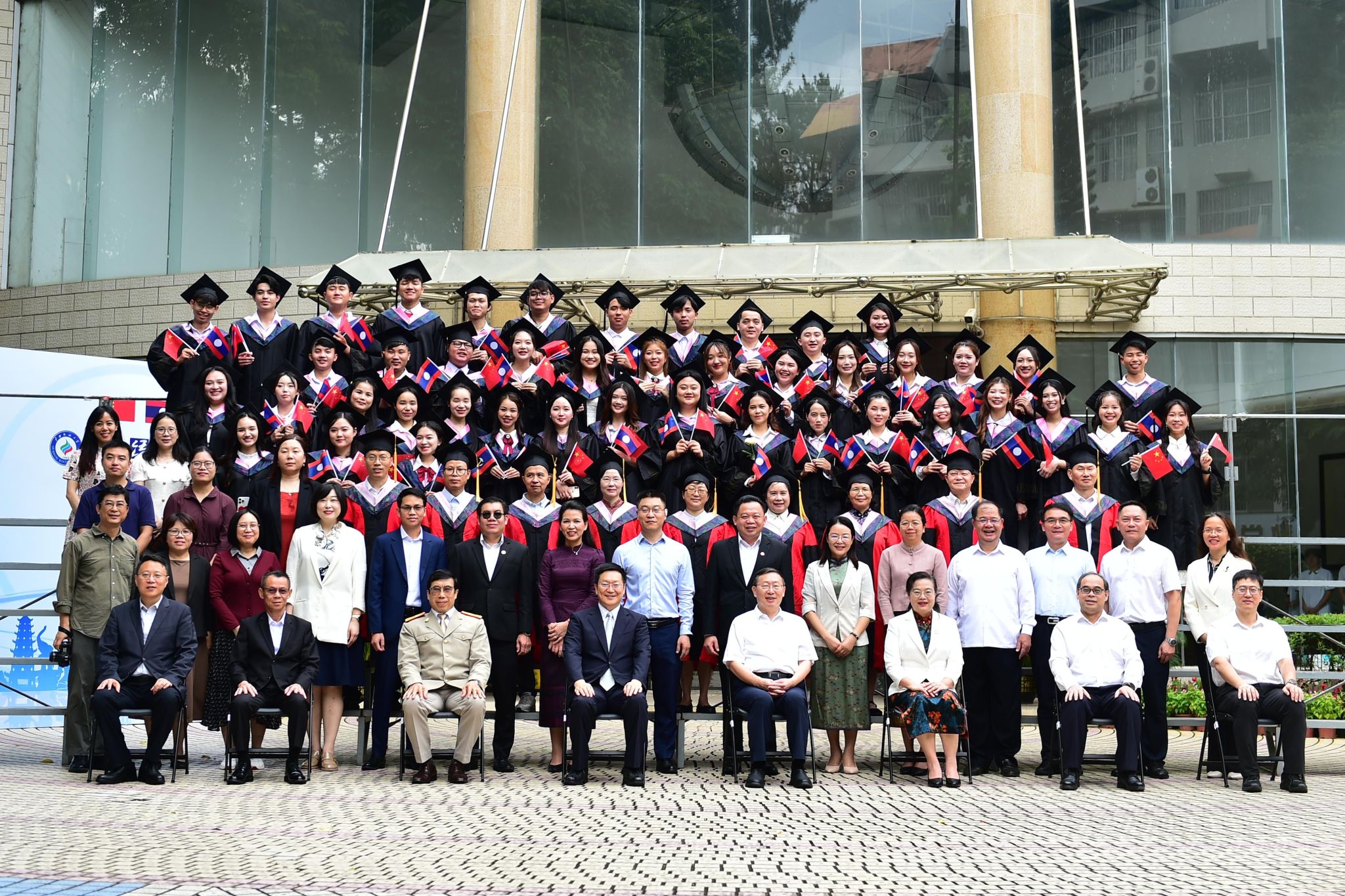 【大学生通讯社报道】6月21日,taptap点点体育首届中老“2+2”联合培养中文师范生项目学生毕业典礼暨学位授予仪式在相思湖校区科技楼报告厅举行。taptap点点体育党委书记卞成林出席仪式,taptap点点体育校长韦仕珍,老挝国立大学校长德萨努拉·森登德,中国教育部中外语言交流合作中心副主任胡志平,老挝驻南宁总领事翁巴努·西巴色,广西壮族自治区教育厅对外合作与交流处处长罗耀光出席并先后致辞,有关学院、部门负责人、教师代表及2023级、2024级老挝中文师范专业“2+2”项目学生齐聚一堂,共同见证这一重要时刻。毕业典礼由taptap点点体育副校长高兴宇主持。