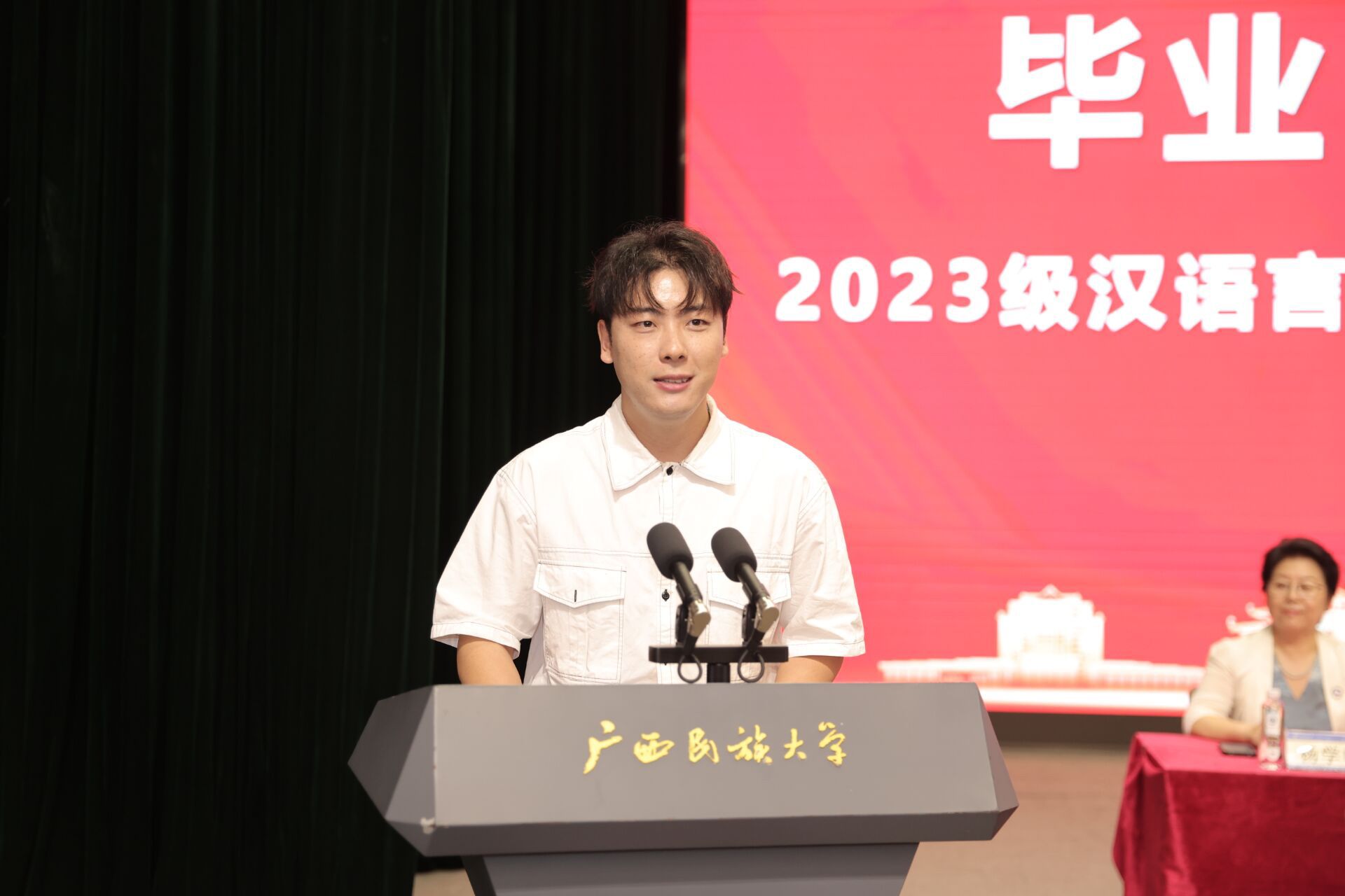 毕业生代表邱豪分享了他的学习收获和毕业感受,感谢学校与师长的培育。他表示,在高等学历继续教育的学习生涯当中,不仅提升了自身能力,还收获了珍贵友谊。他代表全体毕业生承诺,将铭记“厚德博学,和而不同”校训,用实干和担当回馈社会,以业绩与坚守为母校争光。