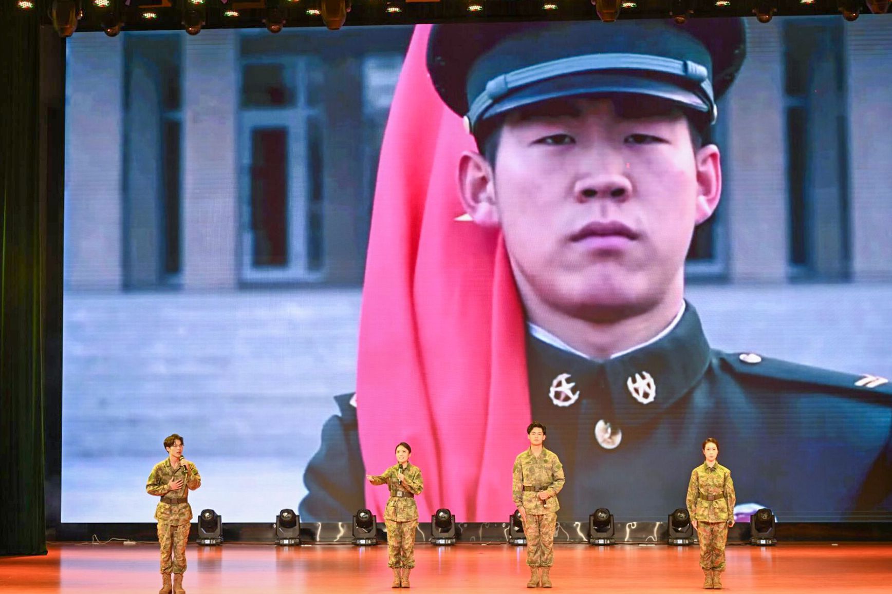歌曲《如愿》旋律柔和但充满力量,歌词串联起不同时代的坚守与奉献,既有对前辈们奋斗历程的崇高致敬,也是对即将踏上军旅的新兵们的殷切嘱托。taptap点点体育话剧团带来的话剧《仗》,以抗日战争为背景,再现了村民与军人并肩作战、生死与共的感人故事,抒写了浓厚的军民鱼水情。歌曲《士兵的桂冠》旋律激昂,是军人刚毅品格的音乐写照,节奏铿锵有力,引发全场共鸣,观众齐声合唱,将现场氛围推向高潮。