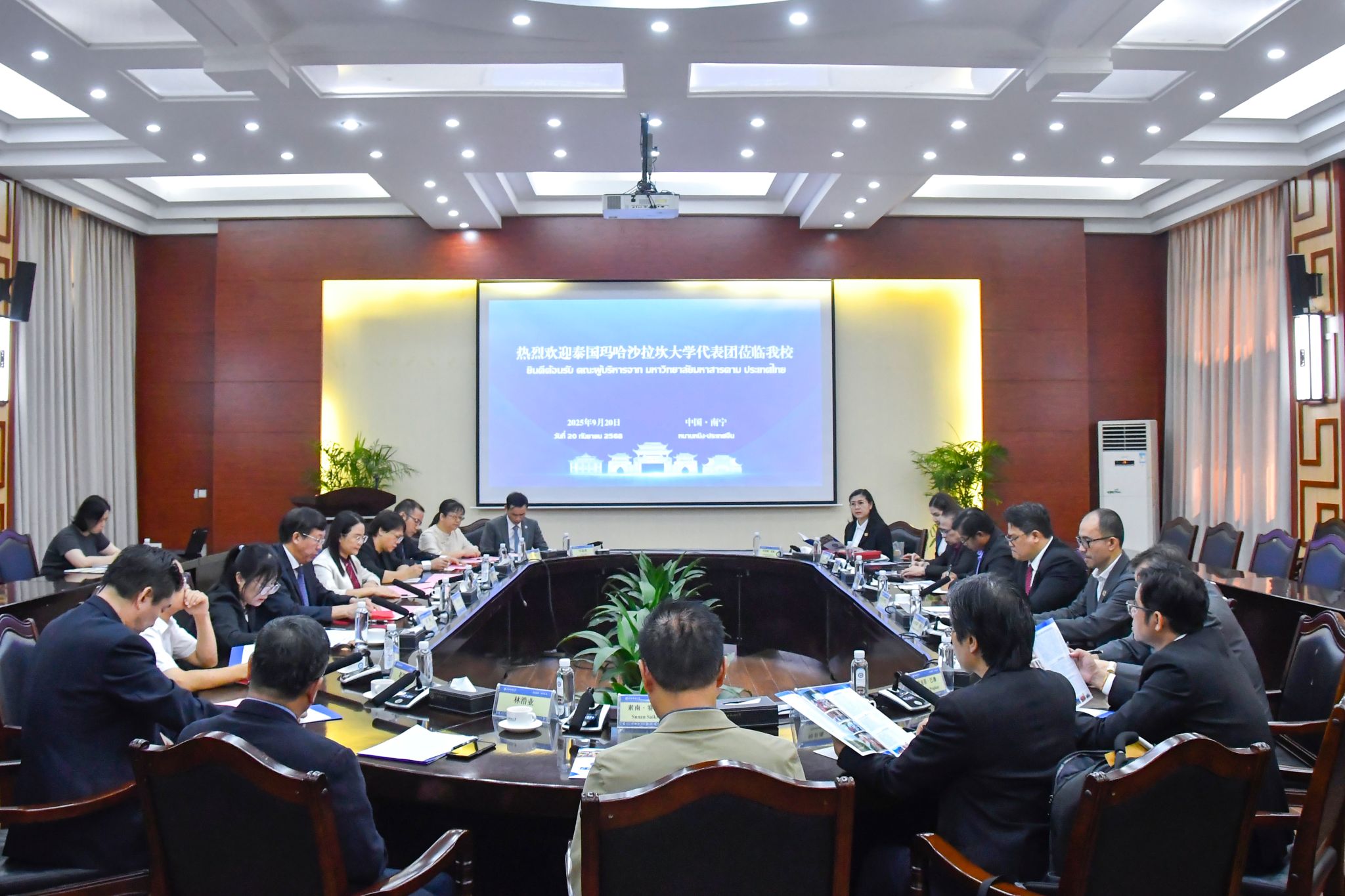 【大学生通讯社报道】9月20日上午,校党委书记唐平秋会见来访的泰国玛哈沙拉坎大学校长巴育·席维莱一行,双方在国际合作与交流处大会议室举行交流座谈。