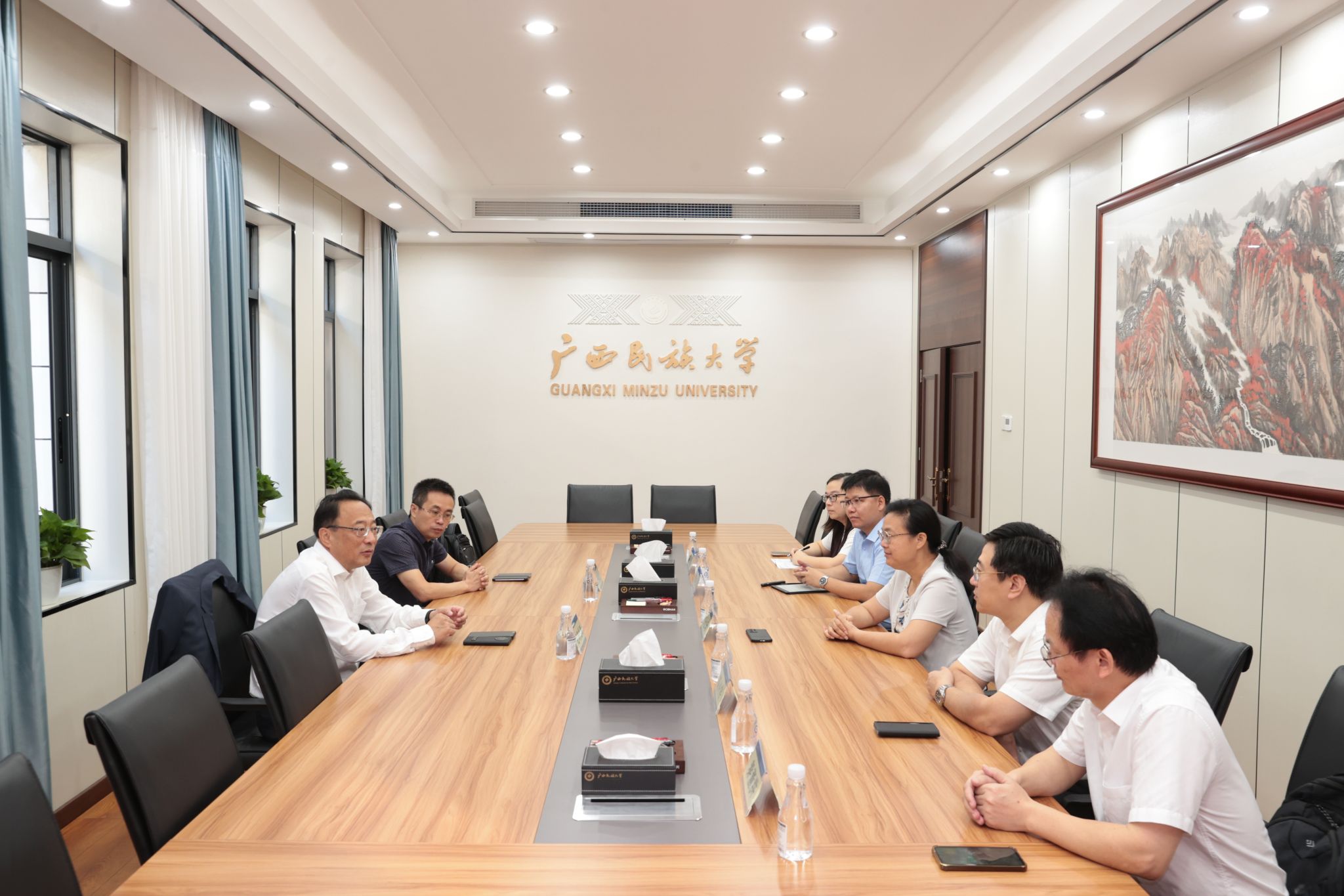 韦仕珍对尼玛扎西院士一行的到来表示欢迎,简要介绍了学校在人工智能及东盟非通用语种教育建设等方面取得的成绩。韦仕珍表示,学校将依托东盟非通用语种与民族语言学科优势,整合现有的东南亚语言及民族语言资源,融合人工智能前沿技术,共同推进东盟非通用语种及民族语言大模型构建,对接国家区域发展战略,助力国产操作系统多语种版本的研发与应用。