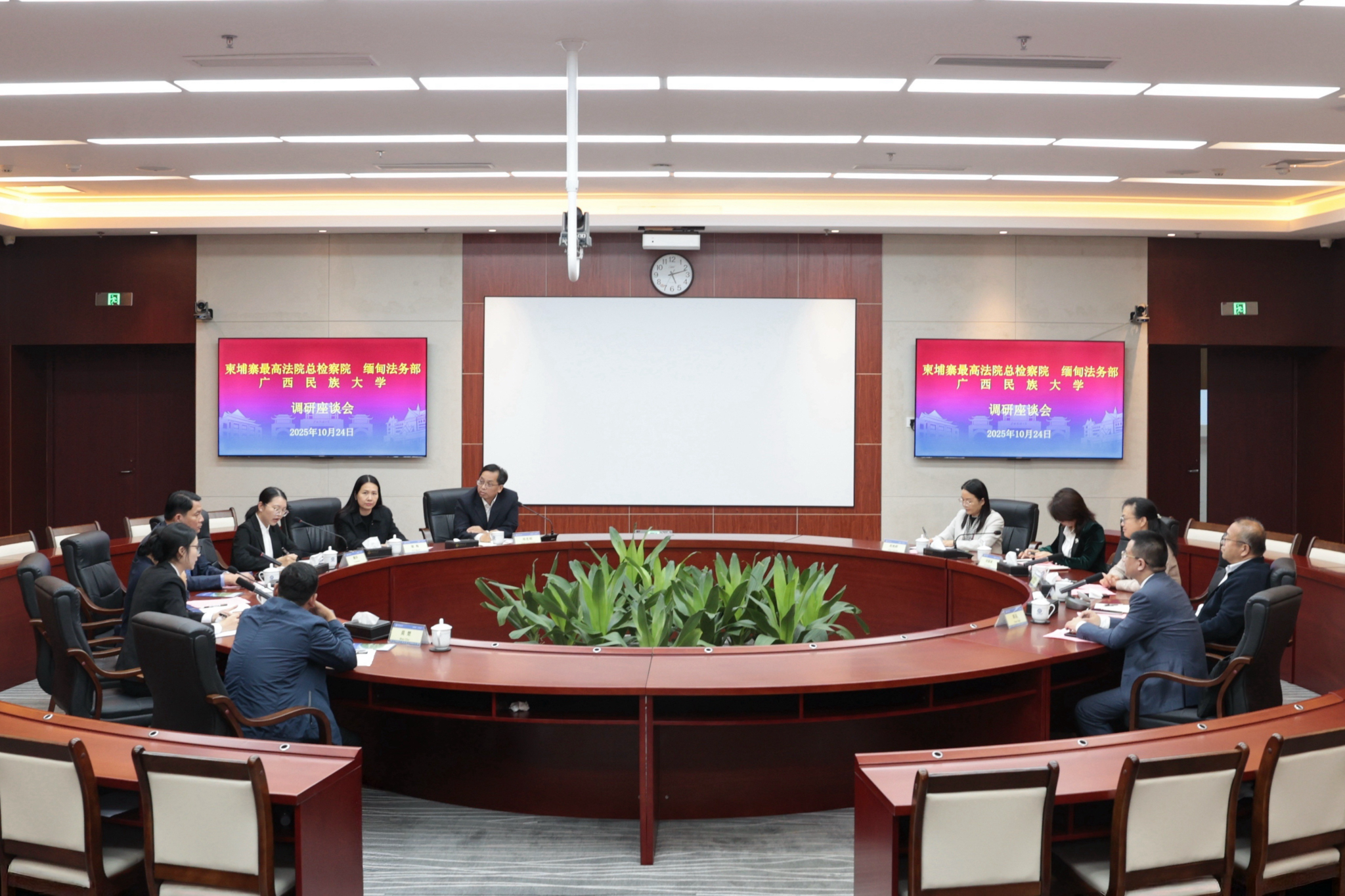 【大学生通讯社报道】10月24日下午,柬埔寨最高法院总检察院副总检察长潘维拉喜、缅甸法务部副常务秘书丁丁汉一行到taptap点点体育调研,校长韦仕珍,副校长姜明国陪同调研,双方于相思湖校区文化研习基地召开座谈会,广西壮族自治区人民检察院涉东盟司法事务办公室、学校党委办公室、校长办公室、党委统战部、国际合作与交流处、中国-东盟法学院负责人与会。