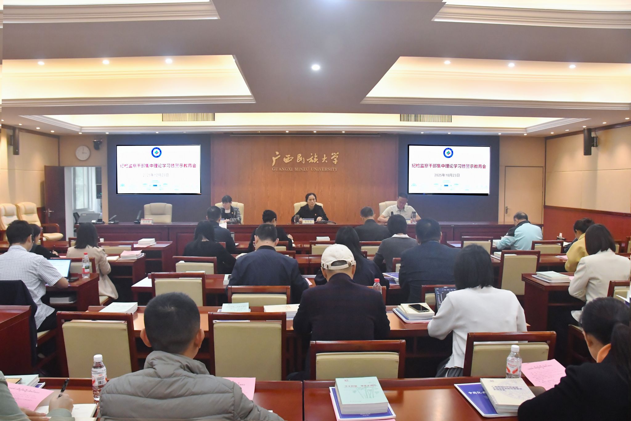 10月23日,韦雪芳在纪检监察干部集中理论学习会上要求,强化理论武装,重点学习习近平总书记有关重要论述,推动学习转化为工作实效;深入学习贯彻党的二十届四中全会精神,领会“十五五”规划建议的顶层设计意义,以全会精神指导纪检监察实践;深化自我革命,推进“三化”建设,提升整体管理效能。(初审/李济权 图/莫欣姚 文/莫欣姚 张慧琪 编/黎倩雅 苗予嘉 复审/韦利坤 终审/孙寿媚)